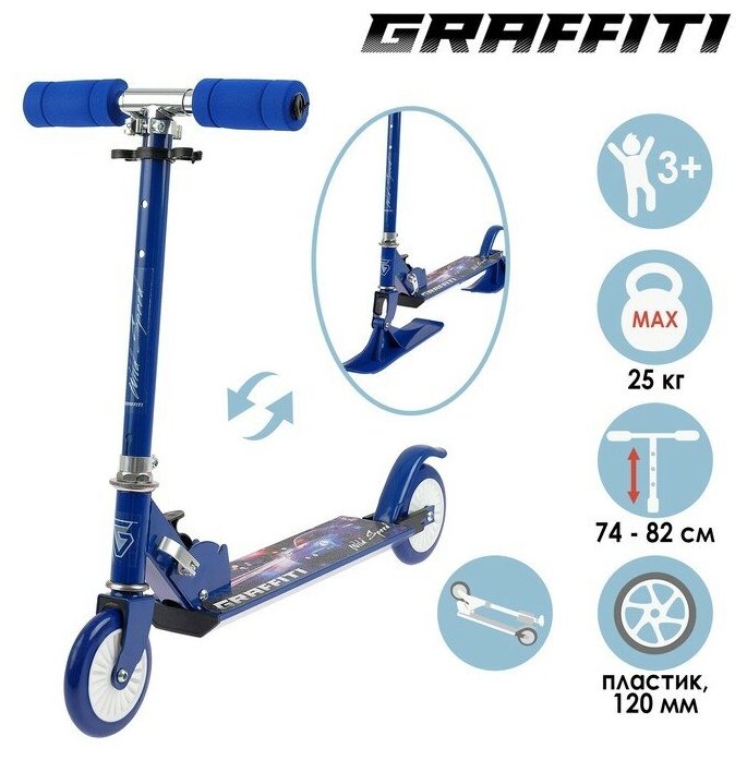 Самокат-снегокат 2 в 1 GRAFFITI Wild Speed, цвет синий интересное: