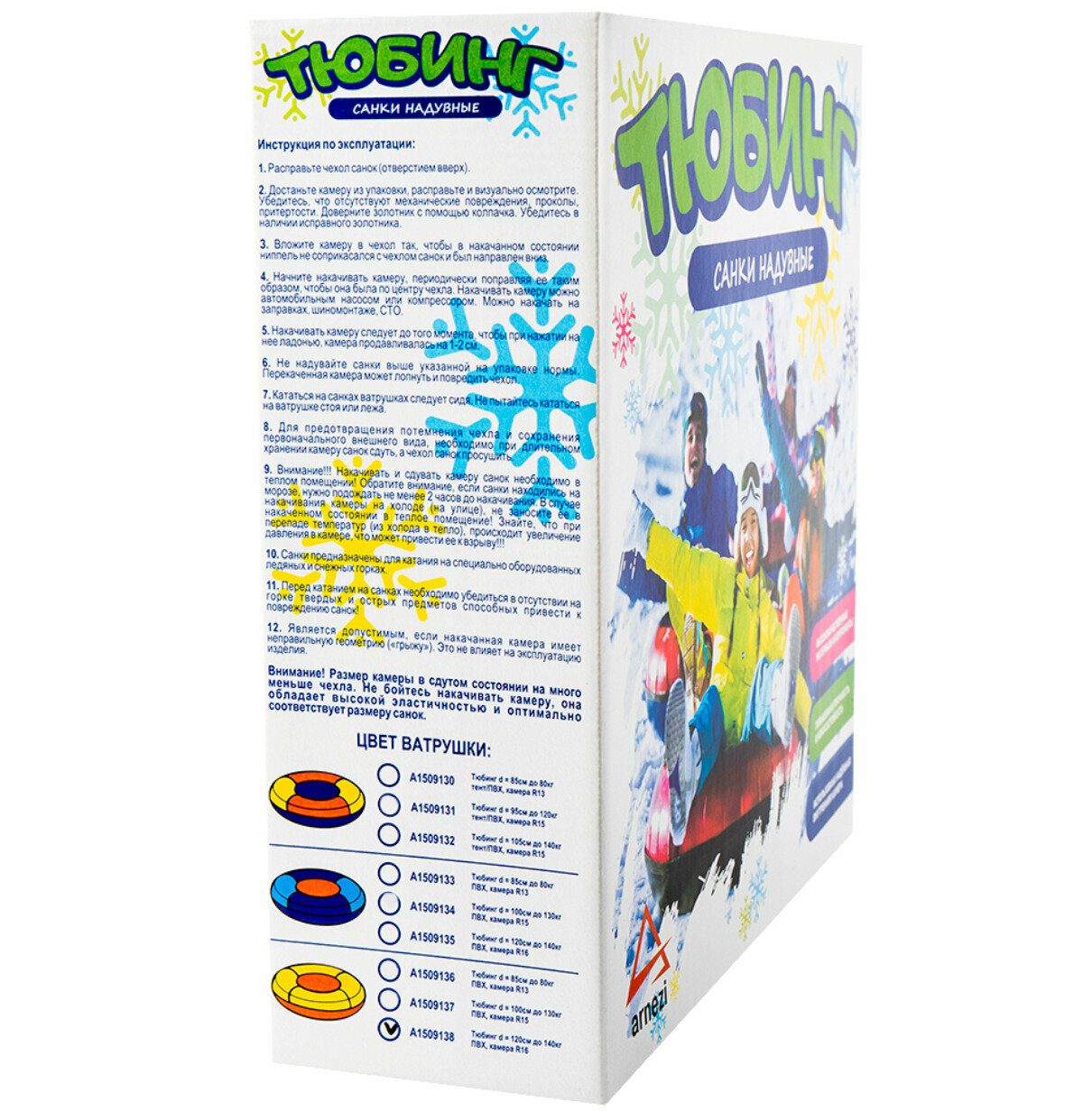 Тюбинг - надувные санки d120 см до 140кг ПВХ, камера R16 в коробке ARNEZI A1509135