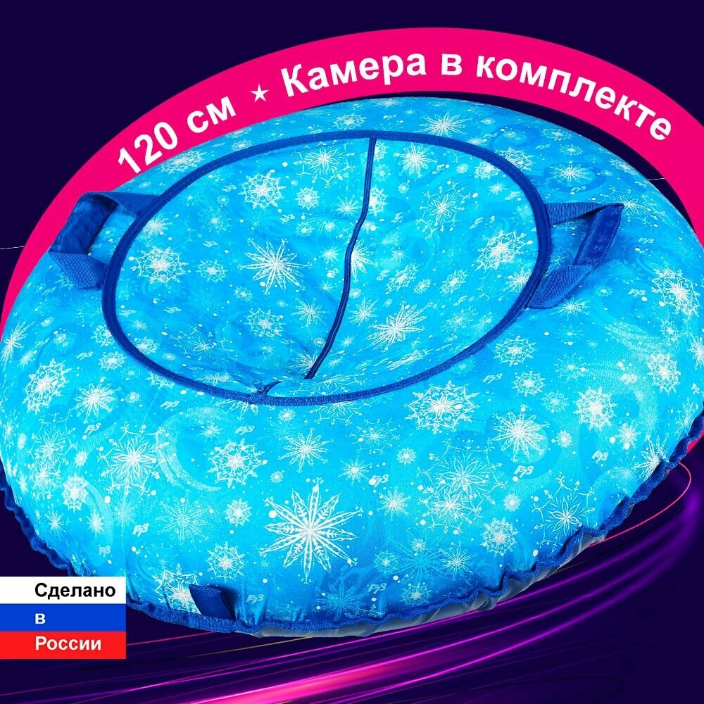 Купить Тюбинг ватрушка SUPER BIG F78 "Снежинки" 120 см, с камерой