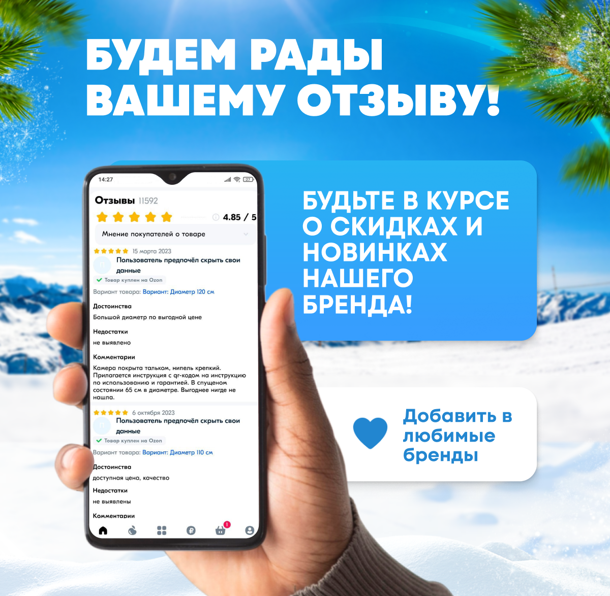 Ниже Вы можете прочитать отзывы на Камера для ватрушки r15 , камера для тюбинга диаметром 105, 110, 115 см (С гарантией) VeloSmile, РФ, ознакомится с подробными характеристиками, посмотреть интересные обзоры и фотографии на Камера для ватрушки r15 , камера для тюбинга диаметром 105, 110, 115 см (С гарантией) VeloSmile, РФ.