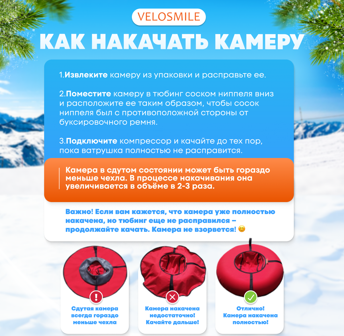 Камера для ватрушки r15 , камера для тюбинга диаметром 105, 110, 115 см (С гарантией) VeloSmile, РФ интересное: