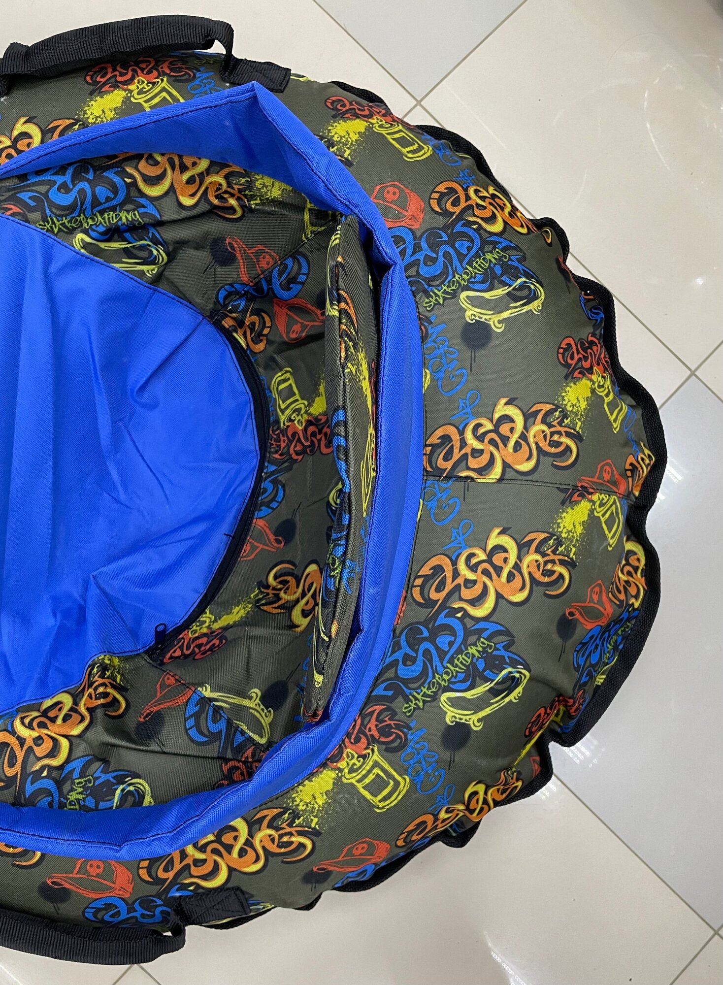 Тюбинг ватрушка Ника со спинкой овальный, синий/черный (буквы и цифры), 78*94см