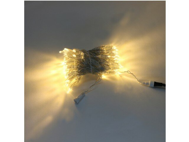 Гирлянда Нить с Колпачком 10м Тепло-Белая с Мерцанием Белого Диода 24В, 100 LED, Провод Прозрачный ПВХ, IP65 (Laitcom)