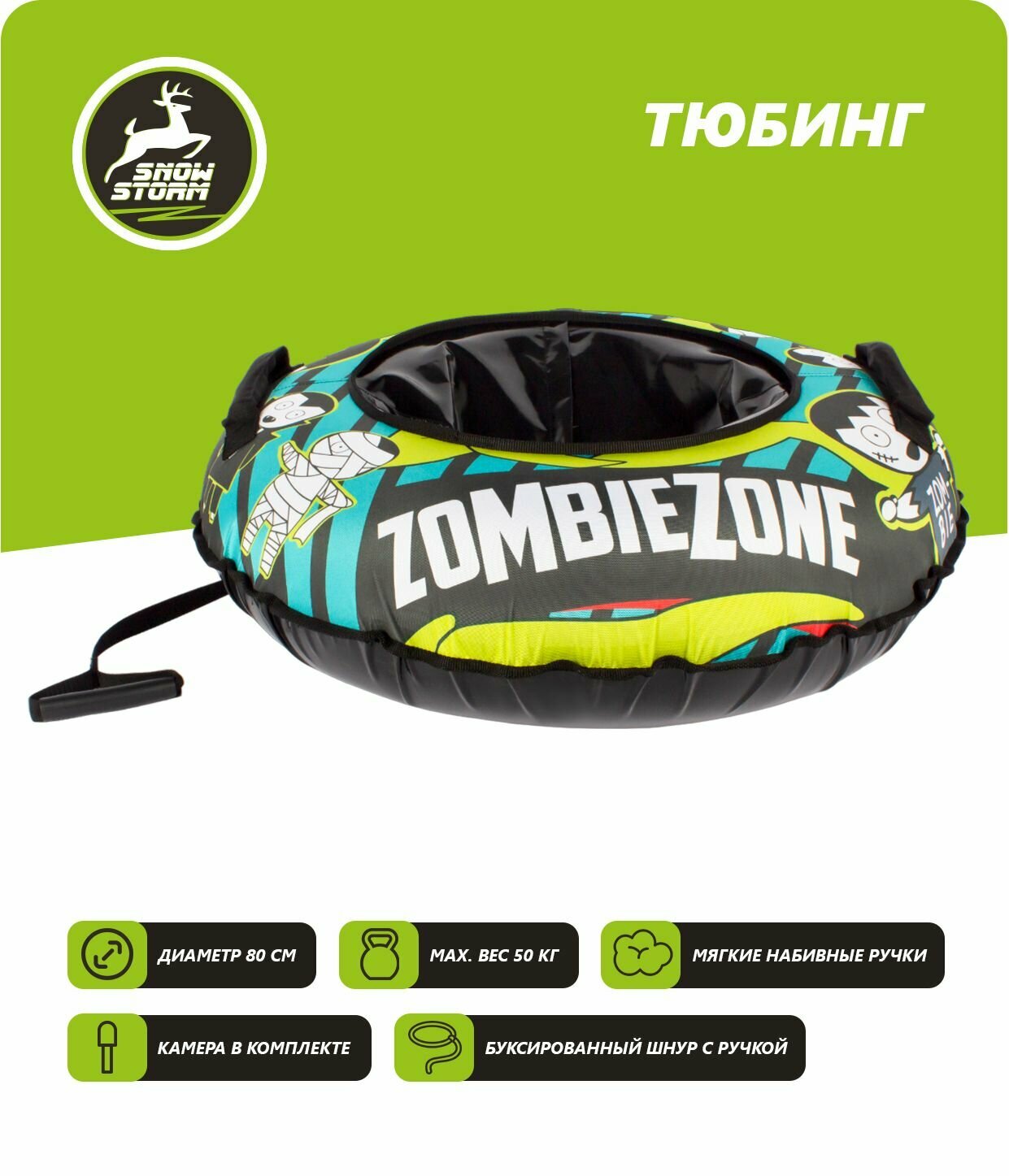 Купить Тюбинг - ватрушка Snowstorm модель BZ-80_ZOMBIEZONE, 80 см, зеленый с черным
