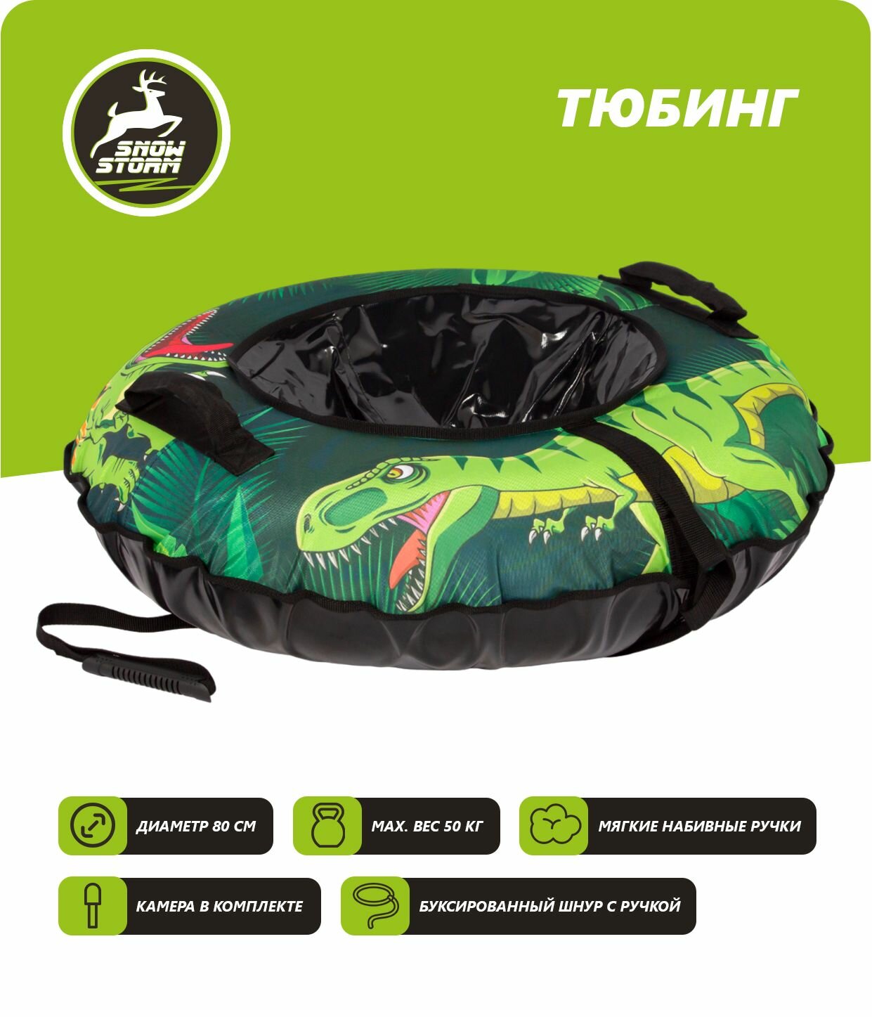 СохранитьТюбинг - ватрушка Snowstorm модель BZ-80_DINOSAURS, 80 см, зеленый с черным интересное: