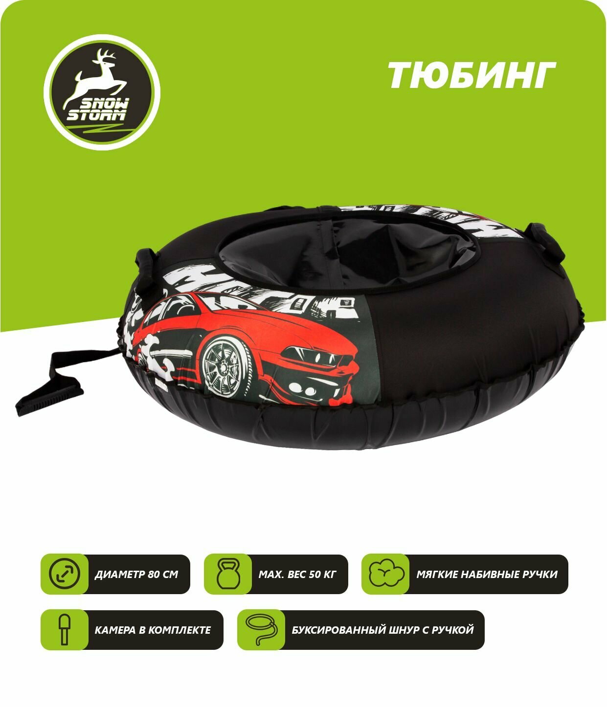 Тюбинг - ватрушка Snowstorm модель BZ-80_PANDA, 80 см, зеленый с черным
