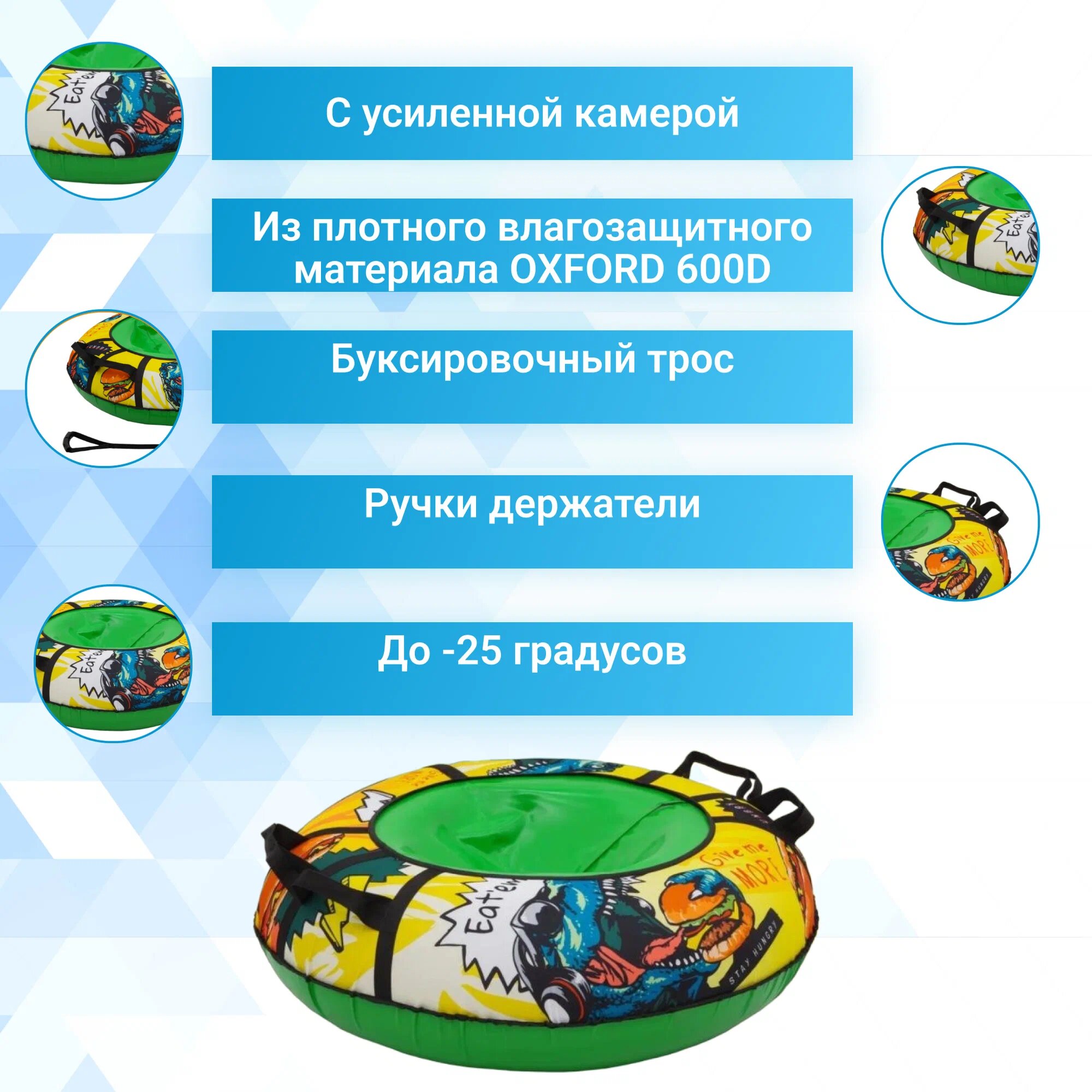 Ниже Вы можете прочитать отзывы на Тюбинг ватрушка 93 см оксфорд + камера R 16 BURGER с принтом, ознакомится с подробными характеристиками, посмотреть интересные обзоры и фотографии на Тюбинг ватрушка 93 см оксфорд + камера R 16 BURGER с принтом.