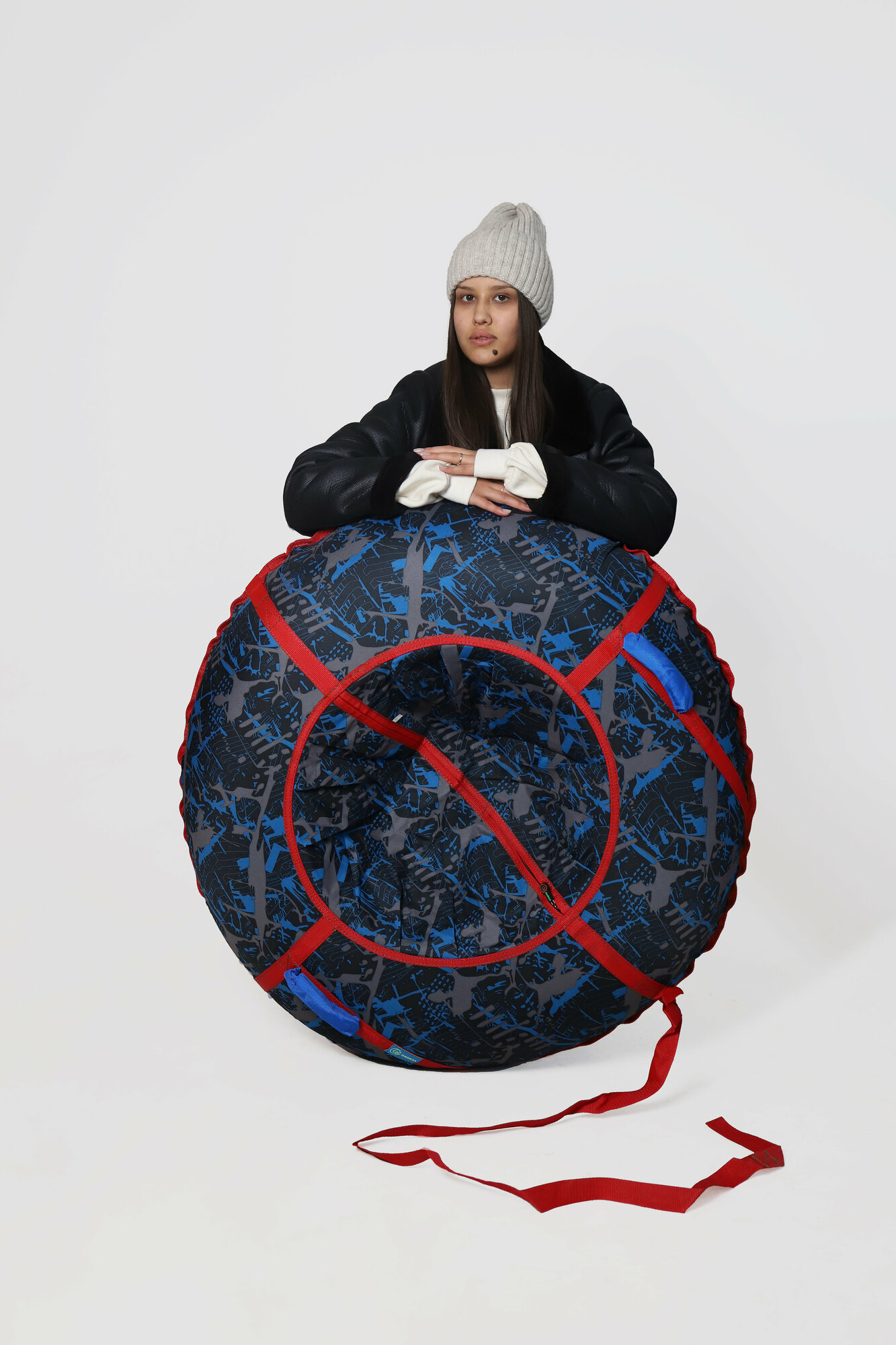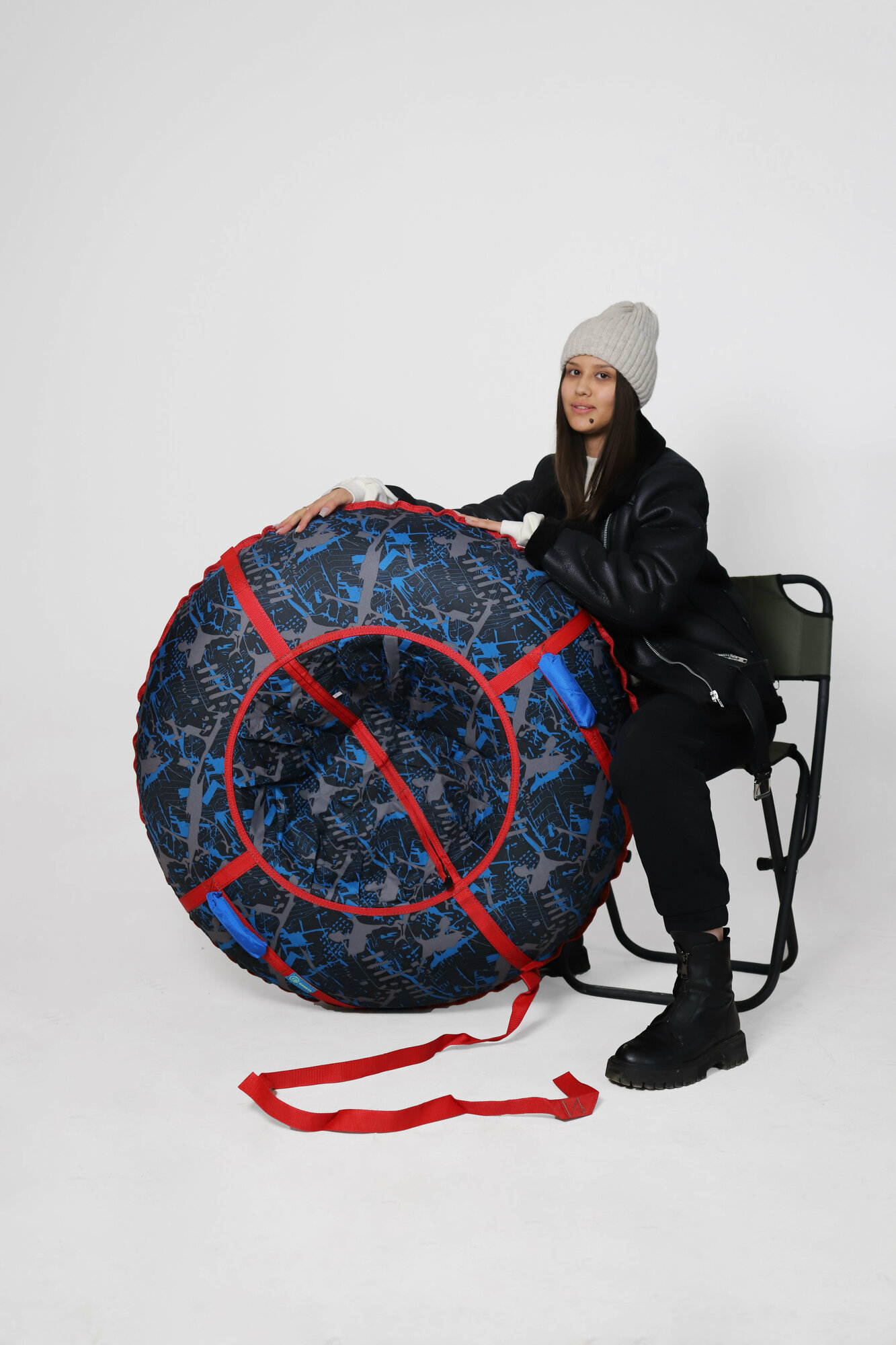 Ватрушка тюбинг граффити 110 см с ручками и буксировочным тросом GAOKSA, санки для катания с горок и склонов с камерой