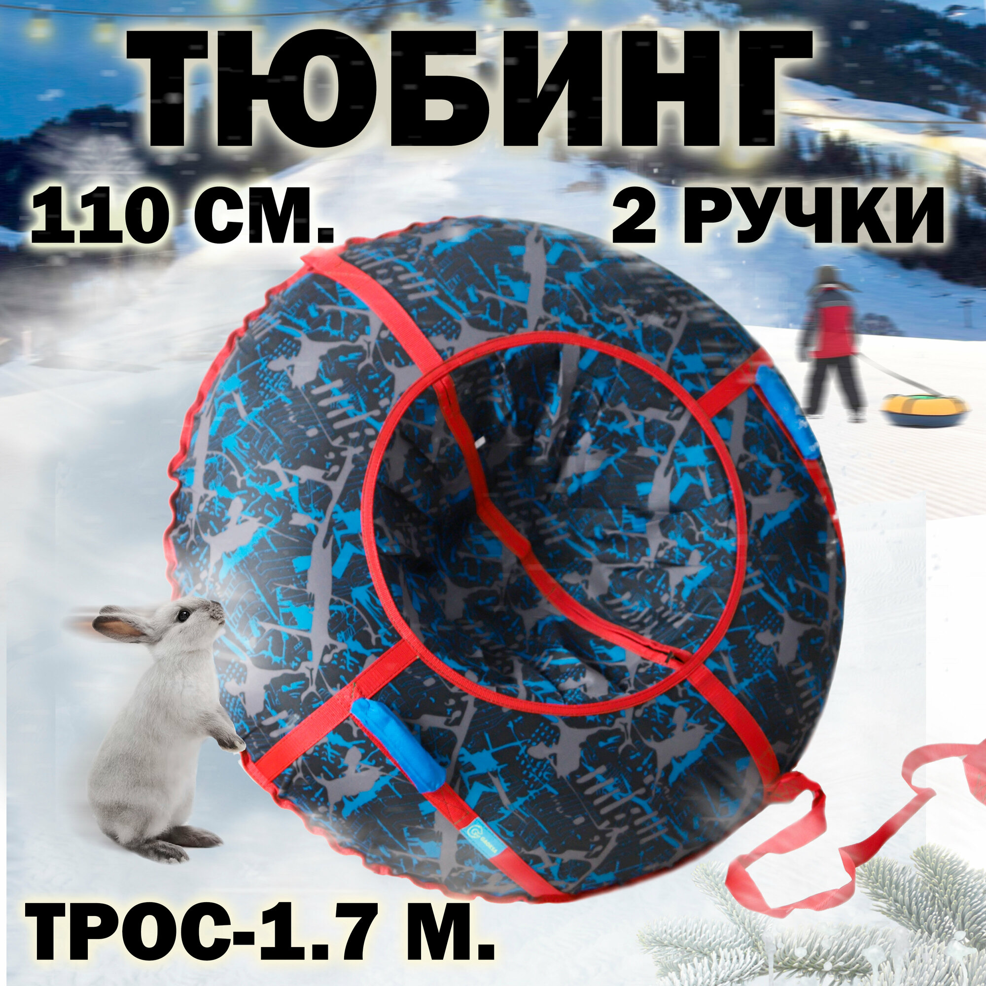 Ватрушка тюбинг 110 см с ручками и буксировочным тросом GAOKSA / Гаокса, санки детские для катания с горок трек синий интересное: