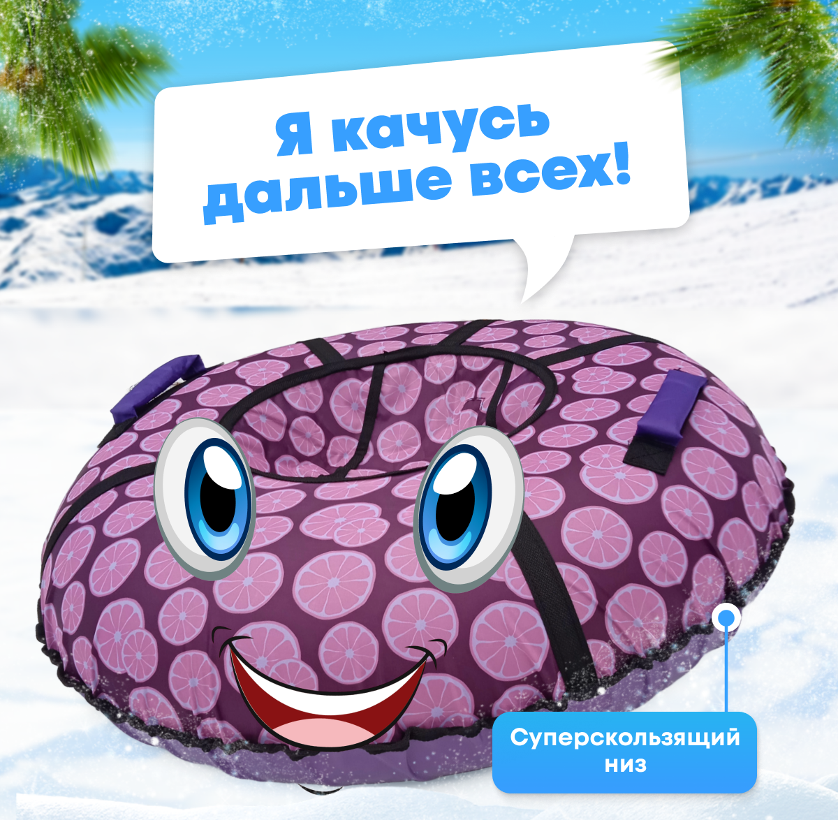 Ватрушка-Тюбинг для катания детская зимняя VeloSmile "Розовые апельсины" 100 см (с молнией и российской камерой) интересное: