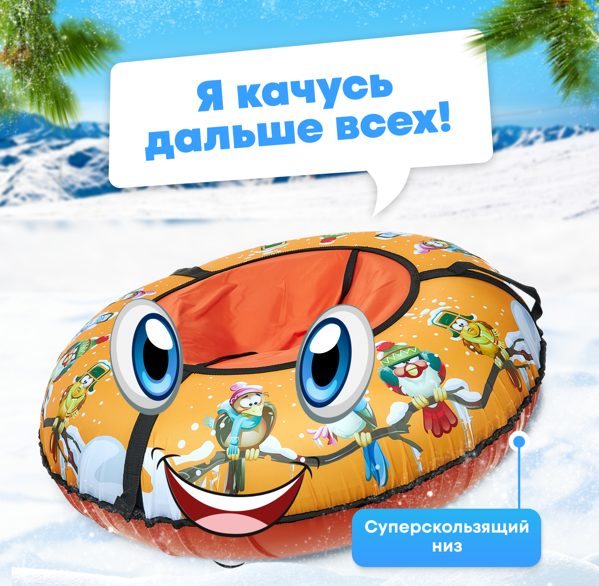Ватрушка-Тюбинг VeloSmile "Птичка" 100 см (с клапаном от снега и российской камерой) интересное: