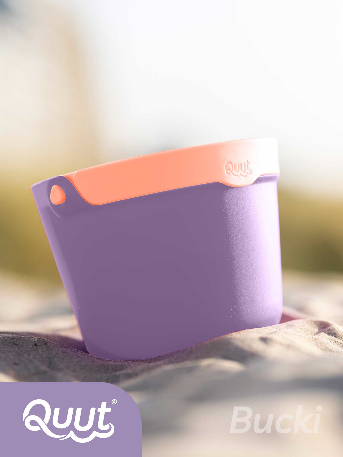 Купить Детское ведерко для воды и песка Quut Bucki с ситом. Цвет: лавандовый и персиковый. Объём: 2 литра