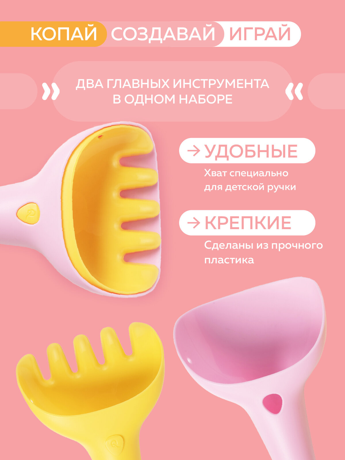 Детский игровой набор для песочницы Quut Raki c лопаткой. Цвет: сладкий розовый и жёлтый камень интересное: