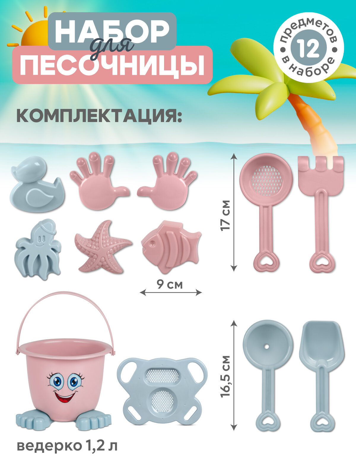 Купить Песочный набор "Человечек", ведёрко с крышкой, лопатка, грабли, воронка, сито, формочки, JB5300904