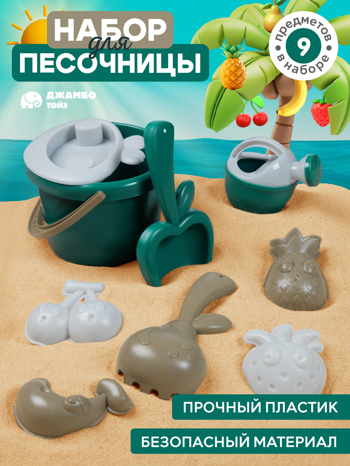 Купить Песочный набор "Фрукты", ведёрко, сито, леечка, лопатка, грабли и 4 формочки, JB5300924