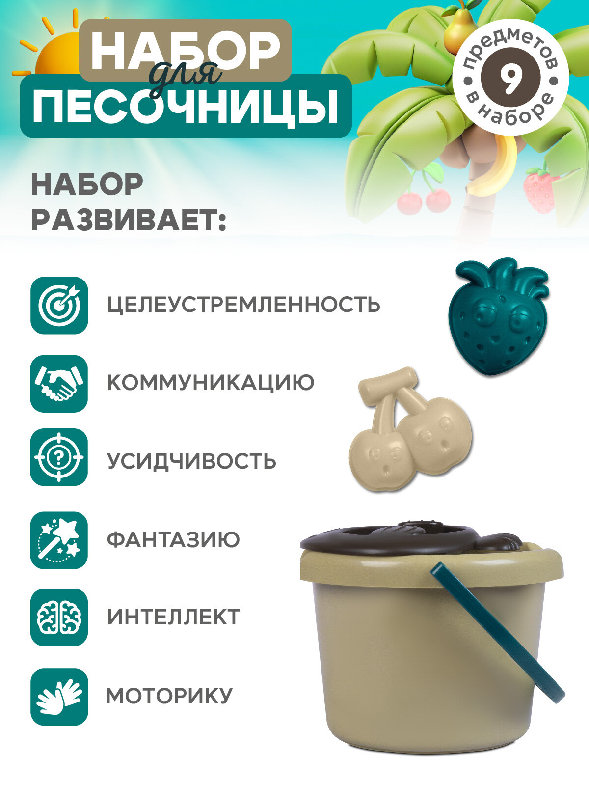 Купить Песочный набор "Фрукты", ведёрко, сито, леечка, лопатка, грабли и 4 формочки, JB5300920