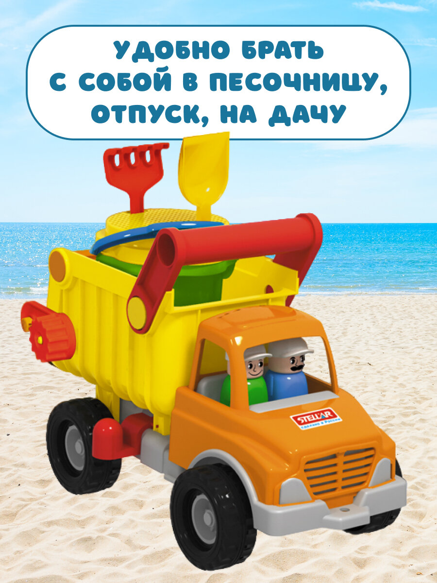 Песочный набор Стеллар, пластик, 3-5 лет, грабли, лопатка, машина, сито интересное: