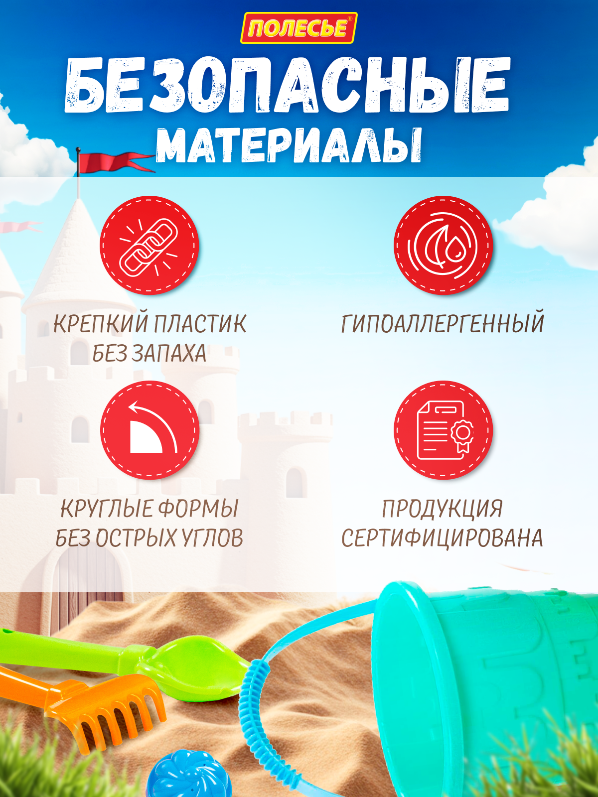 Набор игрушек для песочницы Полесье (ведро, лейка, совок, формочки)