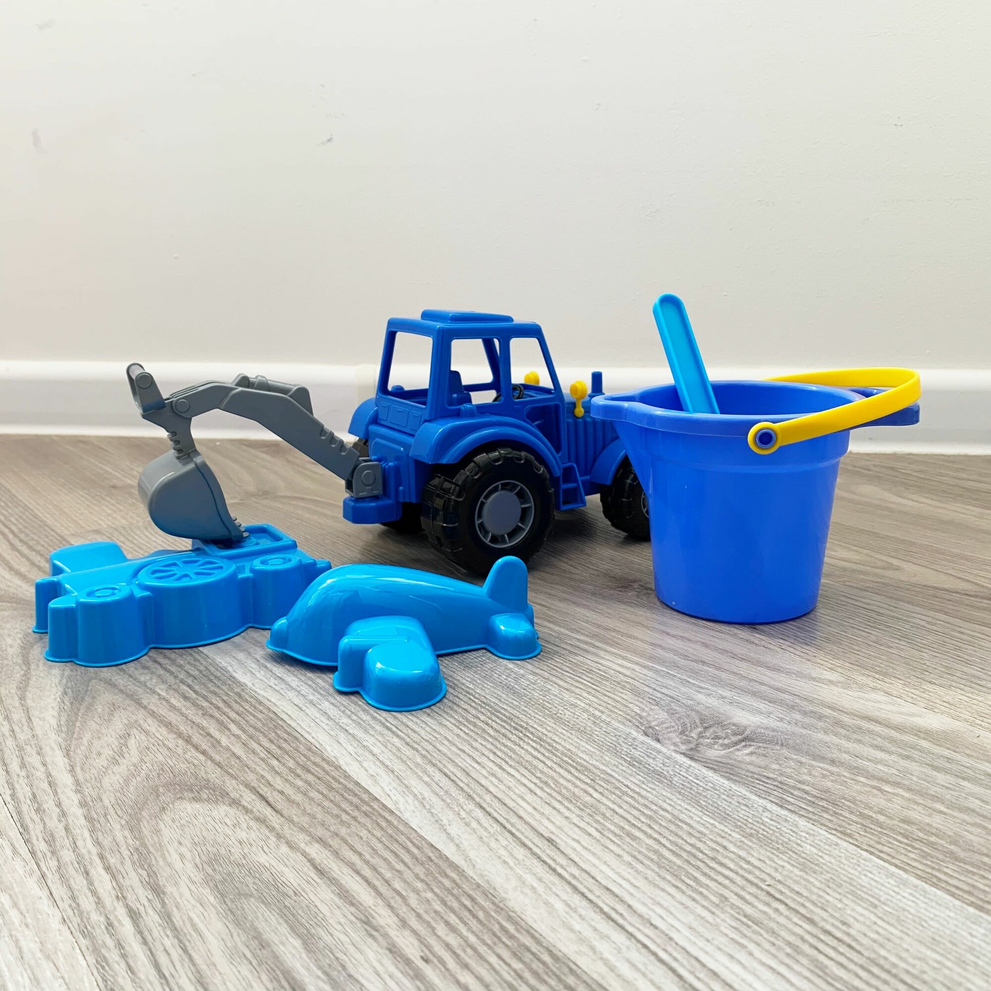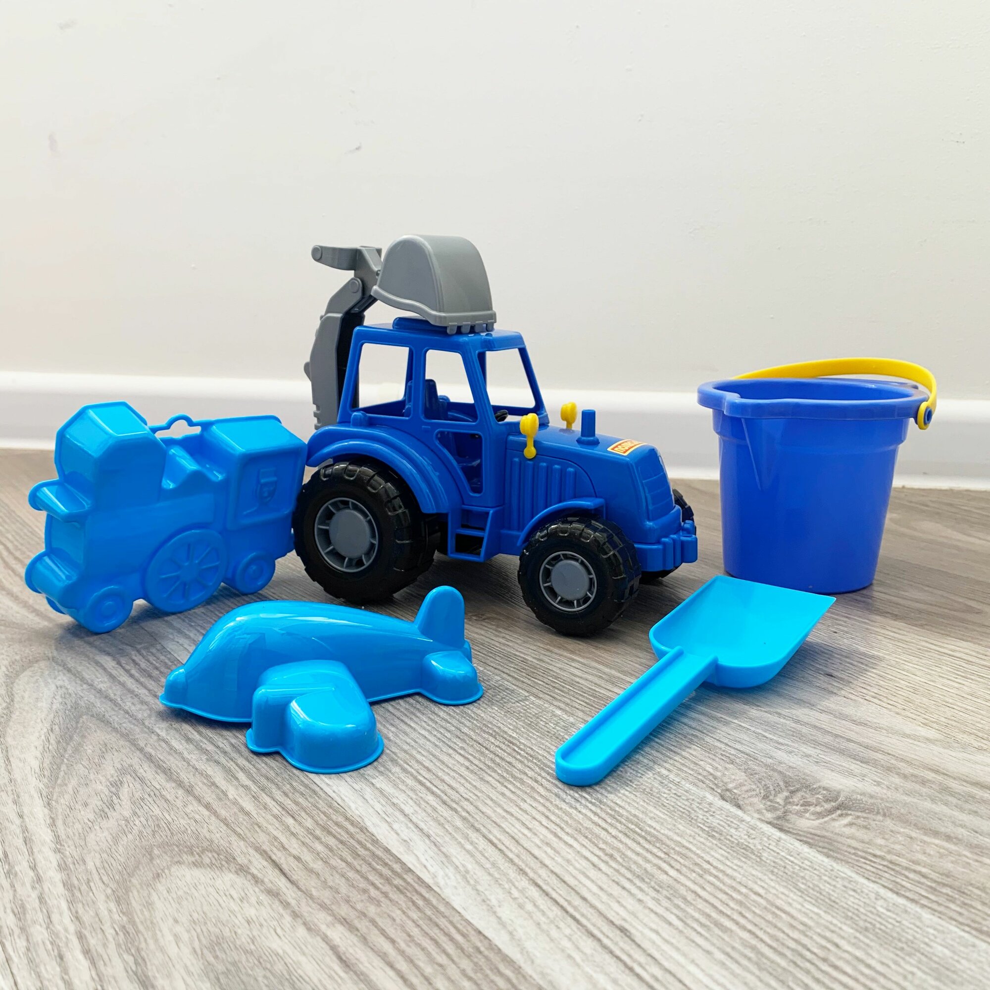 Набор для песочницы: Трактор с прицепом (44 см) + 4 формочки, совок (синий)