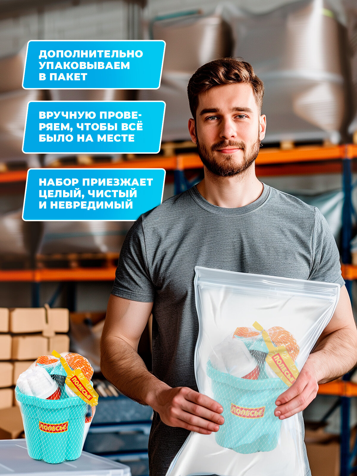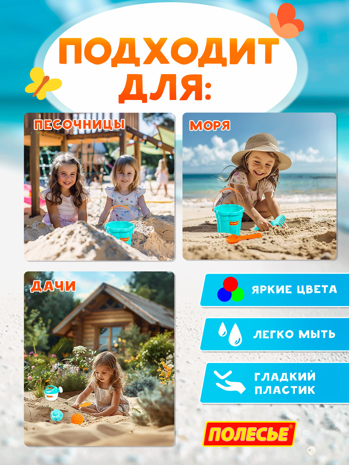Набор для песочницы с бирюзовым ведром-цветком и машинкой, 7 предметов, пластик, от 1 года Полесье