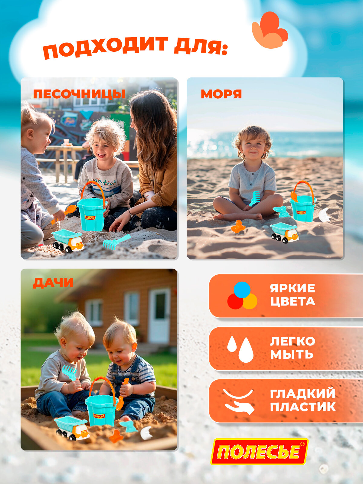 Купить Набор для песочницы с бирюзовым ведром-цветком и машинкой, 7 предметов, пластик, от 1 года Полесье