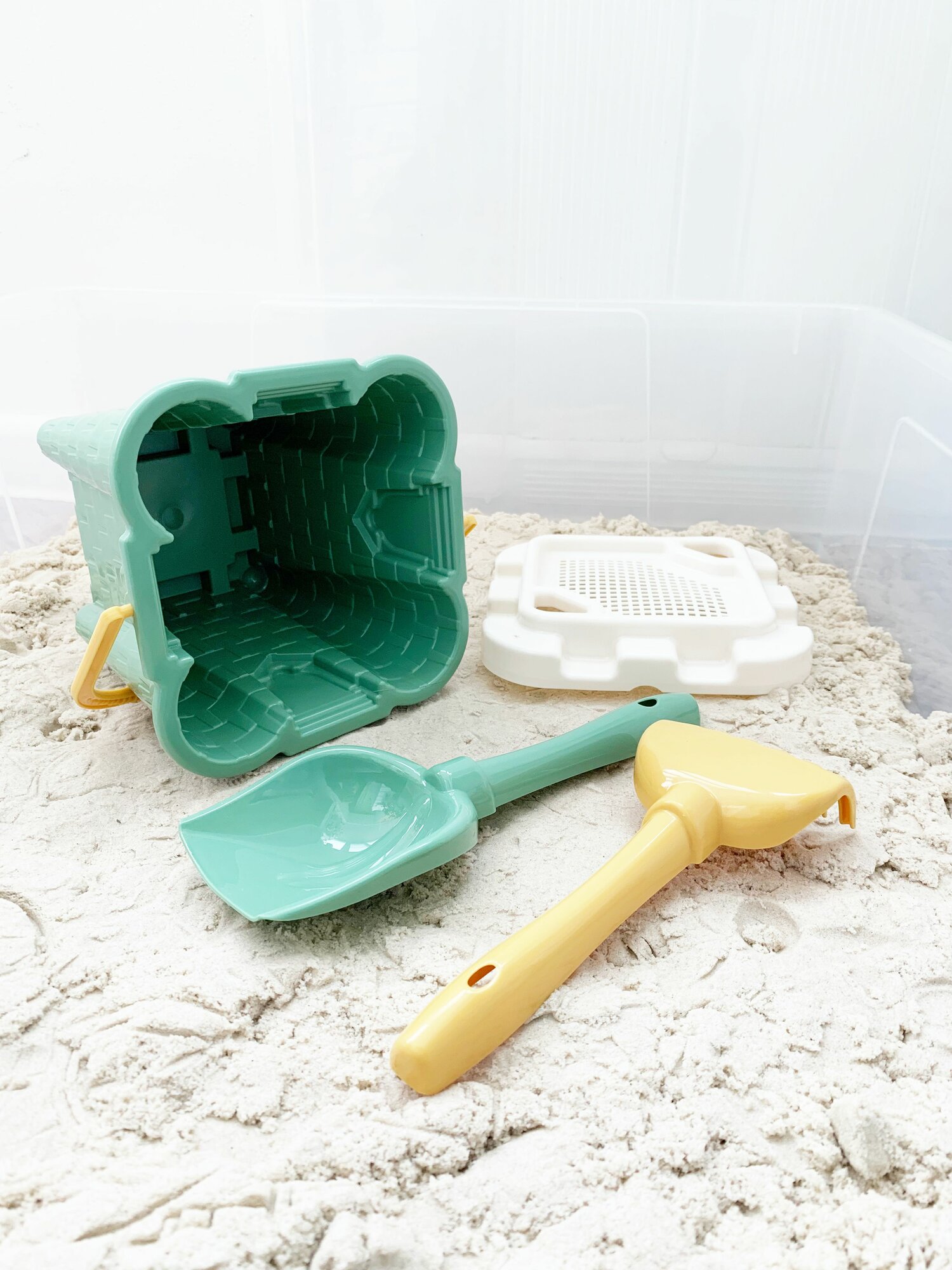 Песочный набор Ведро-замок, 2 формы крепость, сито, лопатка и грабельки №5 / Полесье - серый