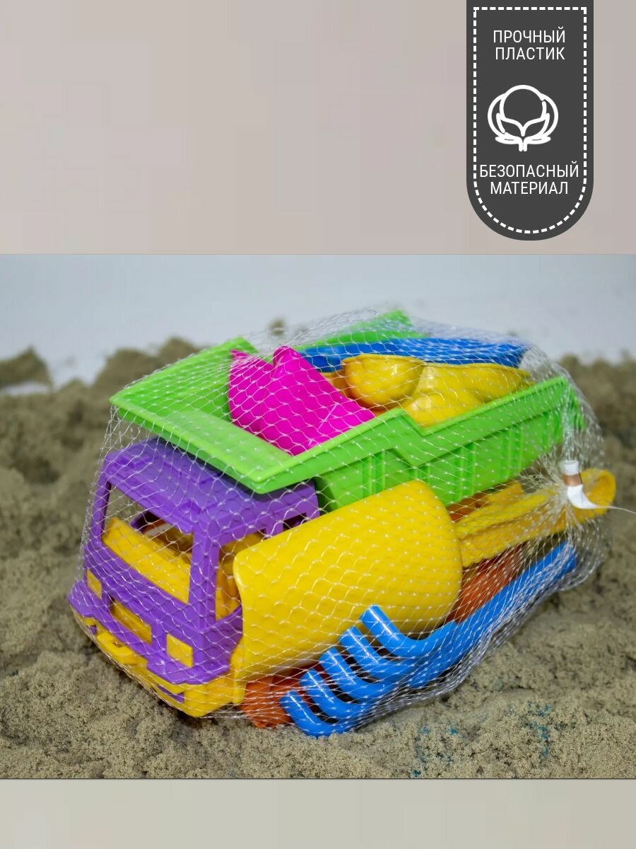 Набор для игры в песочнице Нордпласт "Грузовик с формочками", пластик, желтый интересное:
