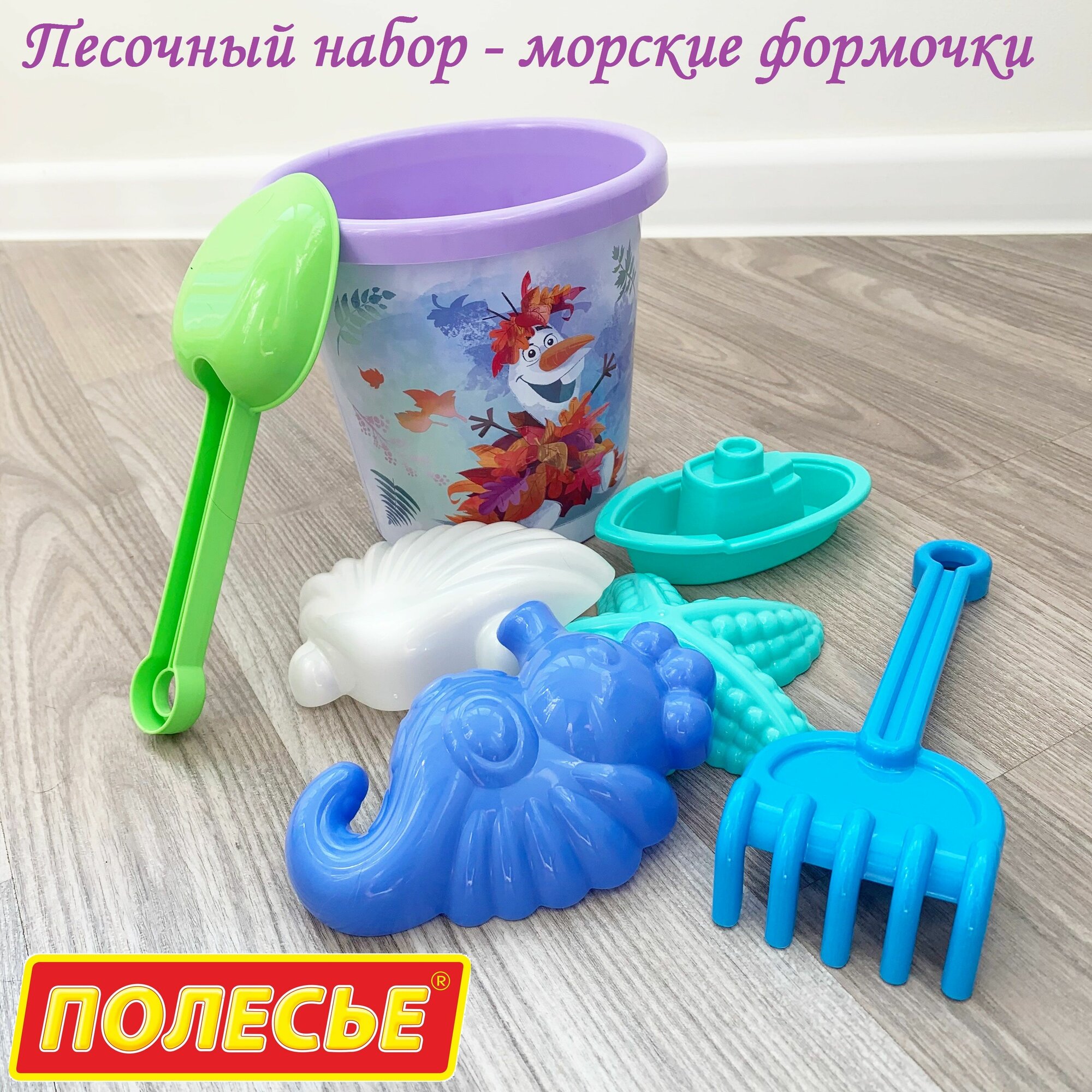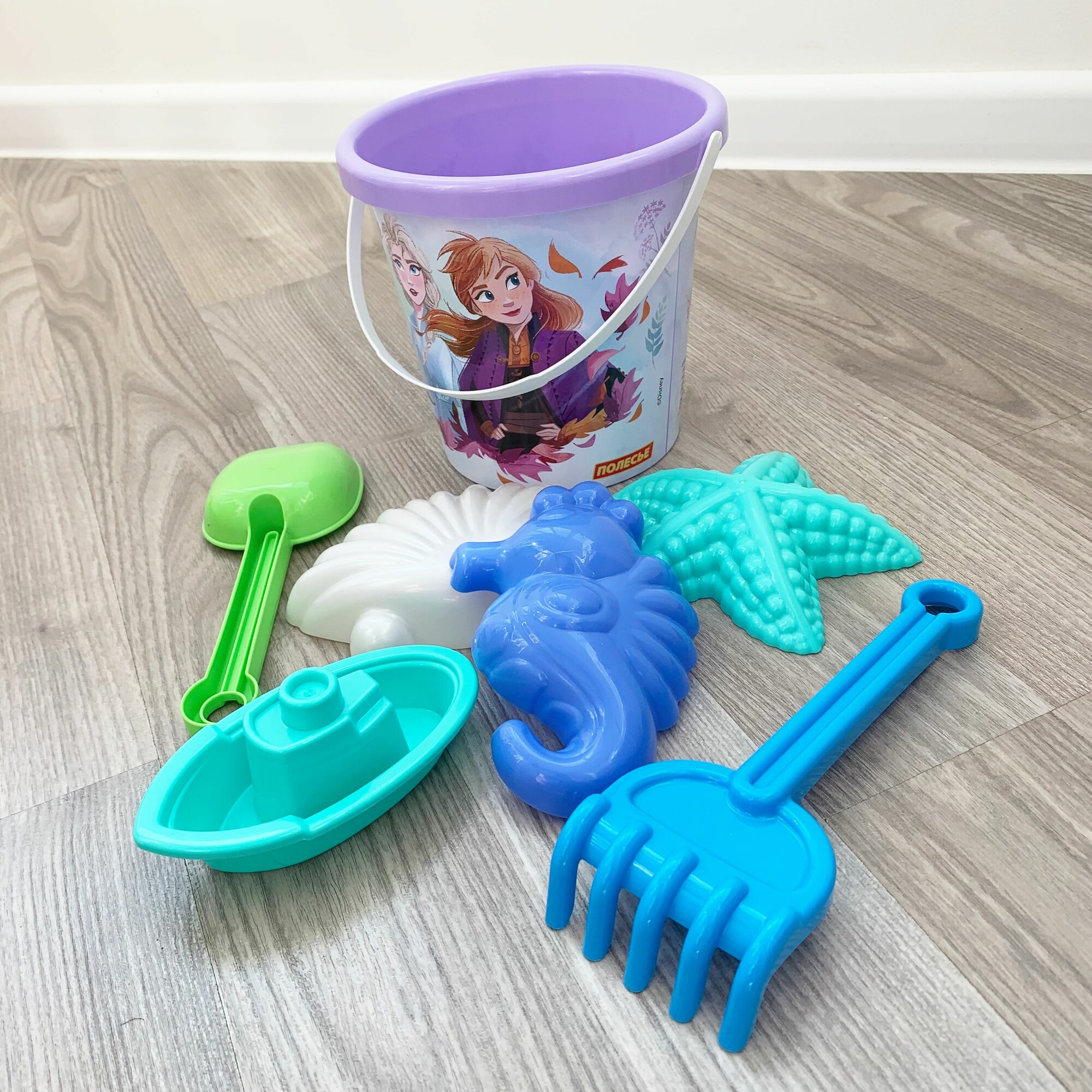 Купить Набор для песочницы Холодное сердце с ведром 2 л. с наклейкой и морскими формочками / Полесье - сиренево-синий