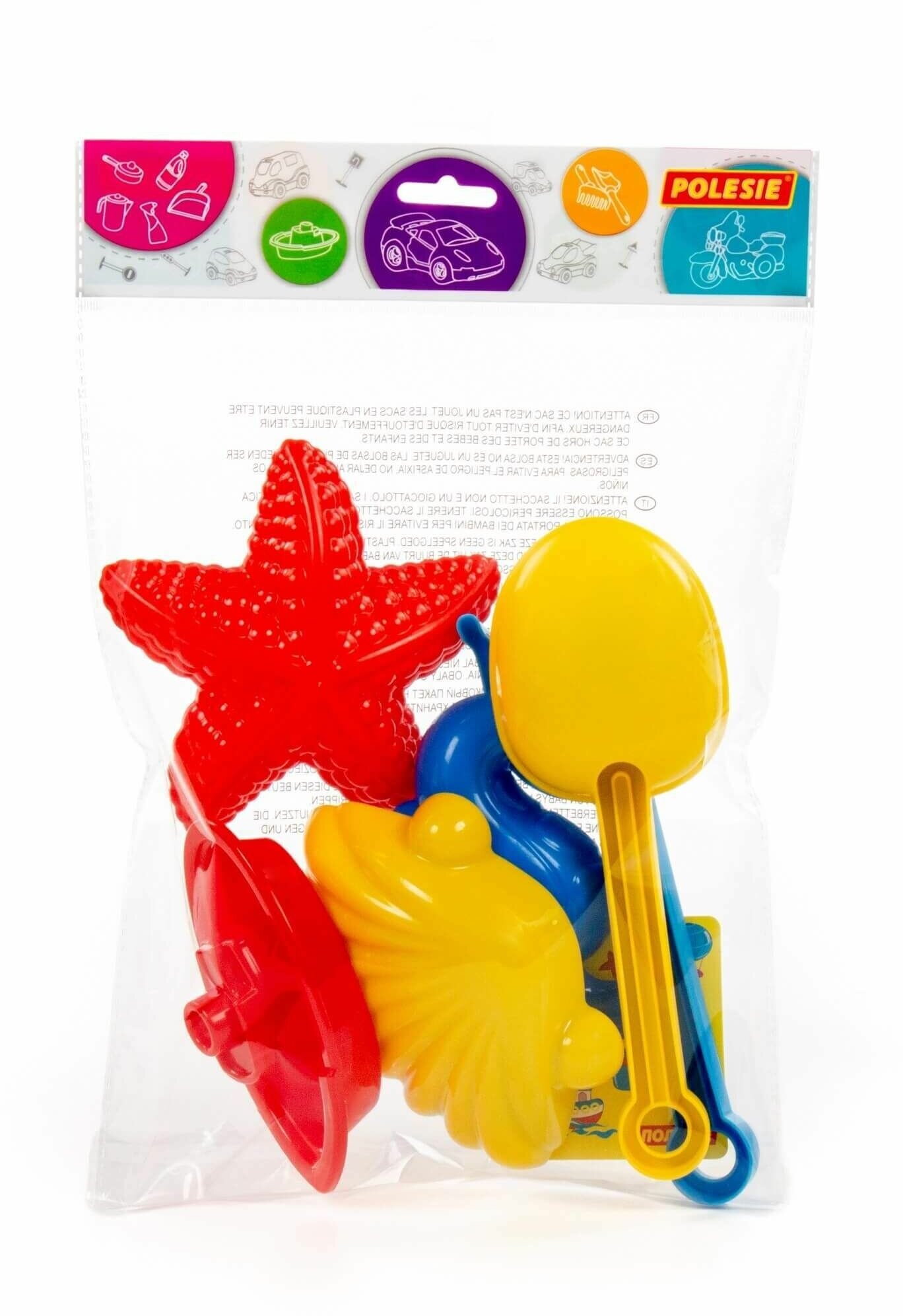 СохранитьИгрушки для песочницы: Морские формочки (6 эл.) - конёк, звезда, ракушка, кораблик, совок, грабельки / Полесье - красно-желтые интересное: