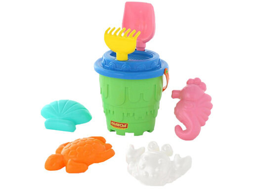 51851 Набор 532: Ведро-замок большое, ситечко-замок, лопатка 5, грабельки 5 4формочки интересное: