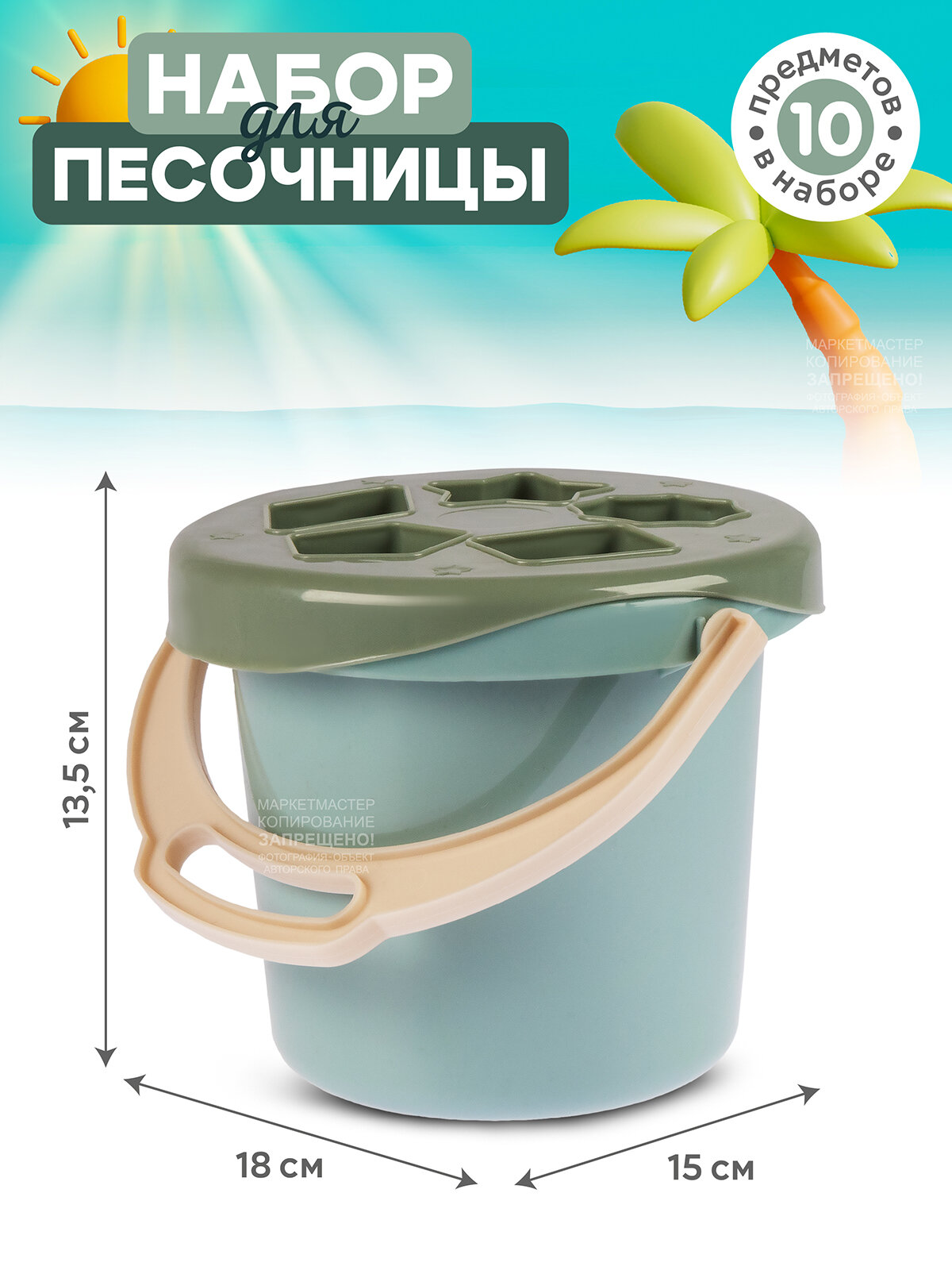 Купить Песочный набор-Сортер 2в1, в комплекте: формочки/лопатка, зеленый, JB5300670