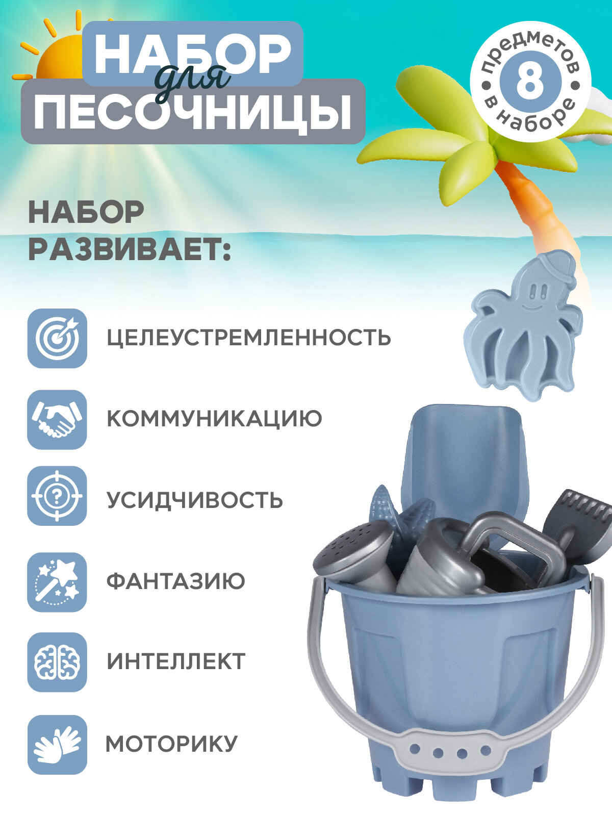 СохранитьПесочный набор, ведерко, лопатка/грабельки, лейка, формочки, JB5300546 интересное:
