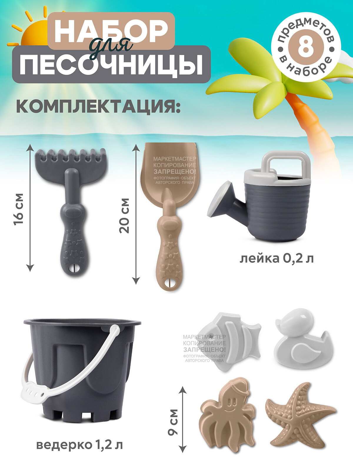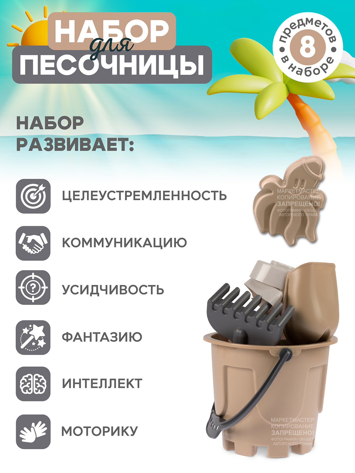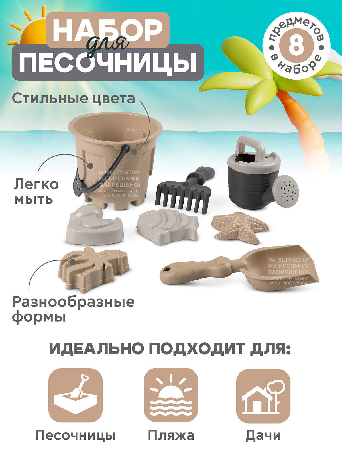 Купить Песочный набор, ведерко, лопатка/грабельки, лейка, формочки, JB5300626