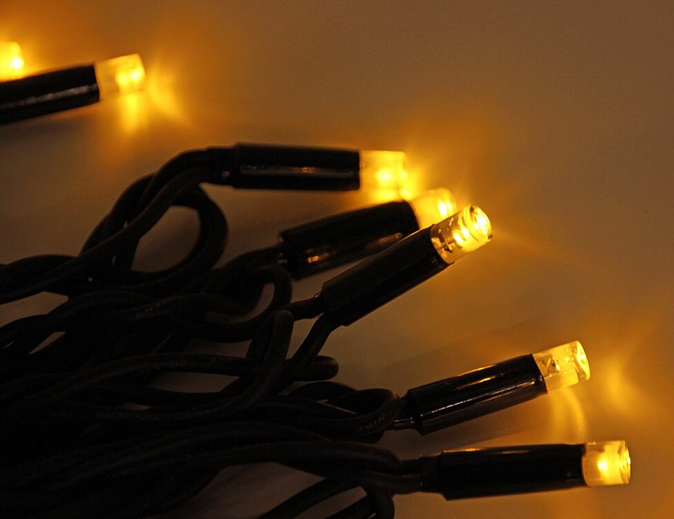 Гирлянда Нить 10м Желтая 24В, 75 LED, Провод Черный Каучук, IP65 (Laitcom)