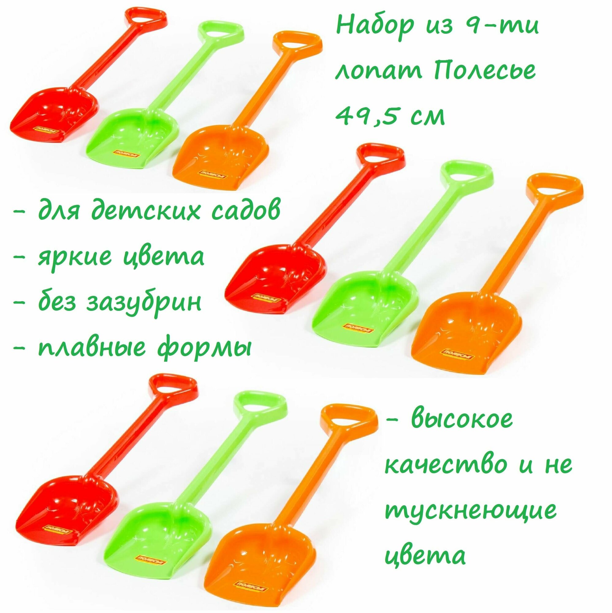 Набор 9 шт. лопатка Полесье детская для игры с песком 49,5 см интересное: