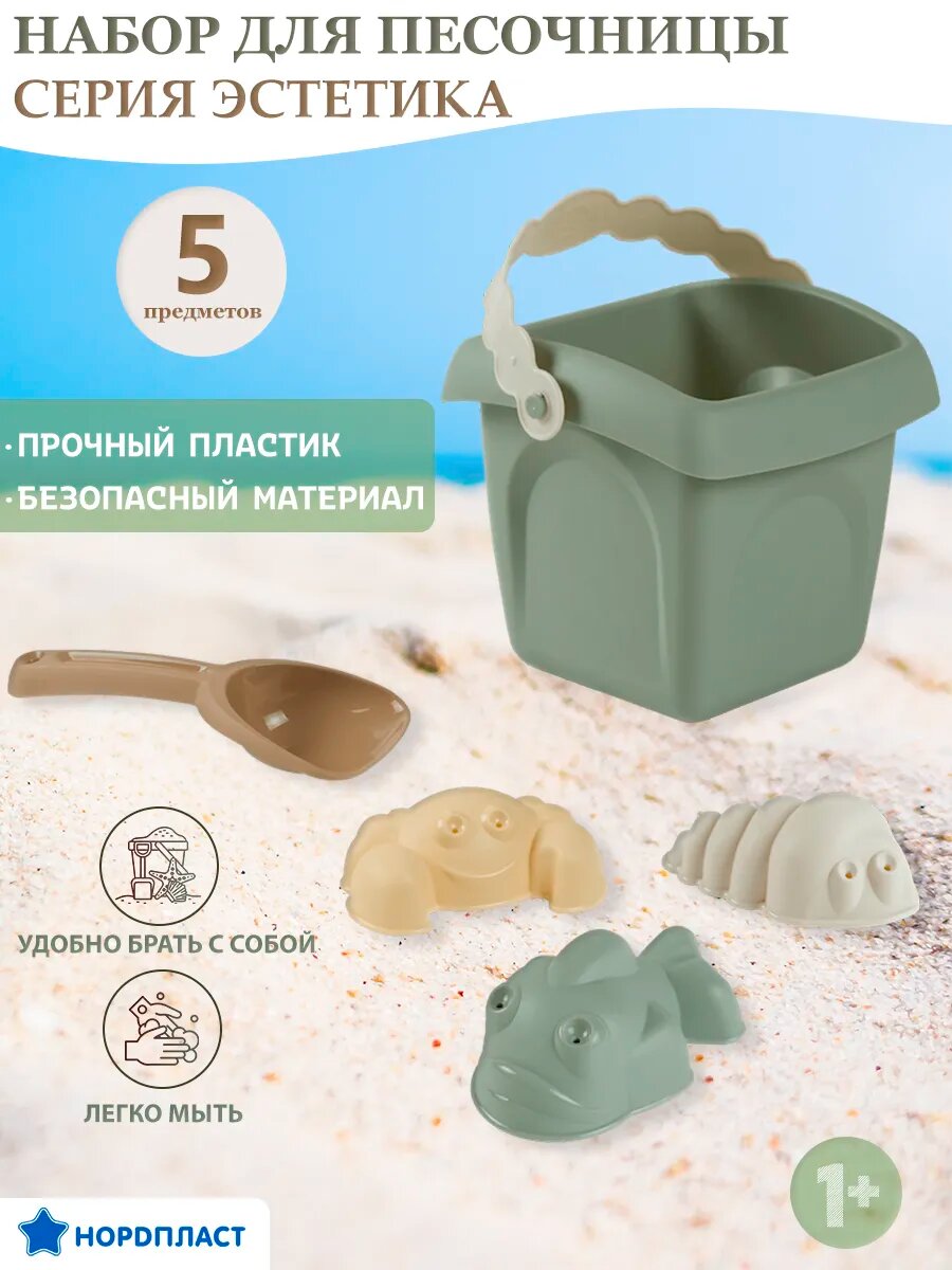 Набор детский для песочницы 5 предметов (ведро, совок, формочки) Нордпласт, на дачу, на пляж интересное: