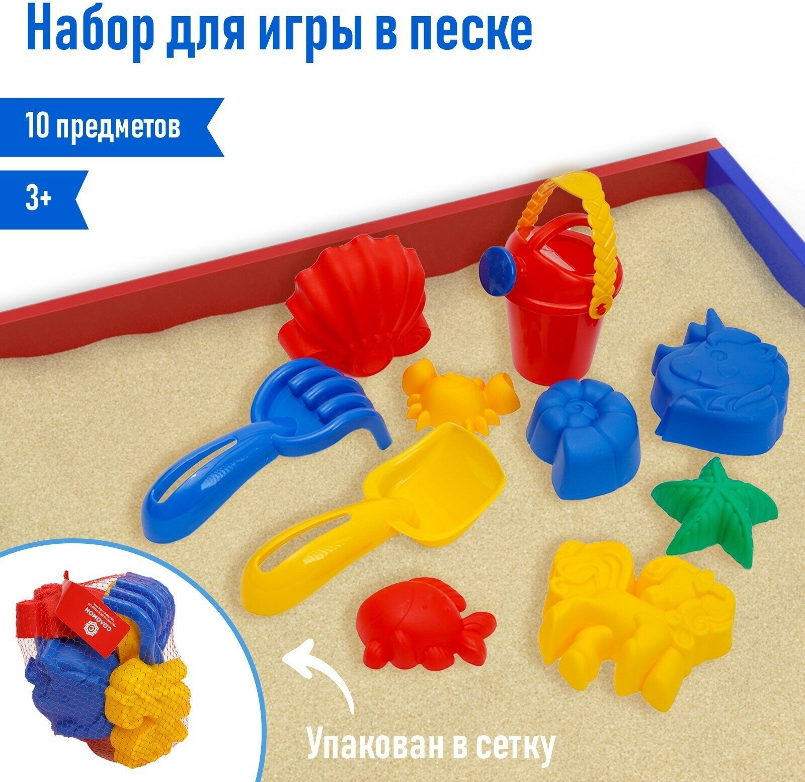 Купить Набор для игры в песке (7 формочек, совок, грабли, лейка 0,35 л), микс, 3301626