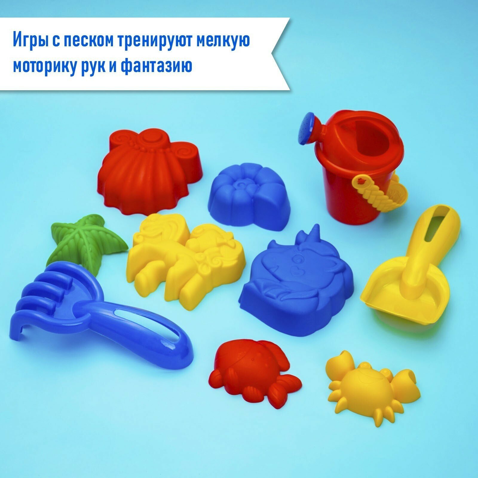 Набор для игры в песке (7 формочек, совок, грабли, лейка 0,35 л), микс, 3301626 интересное: