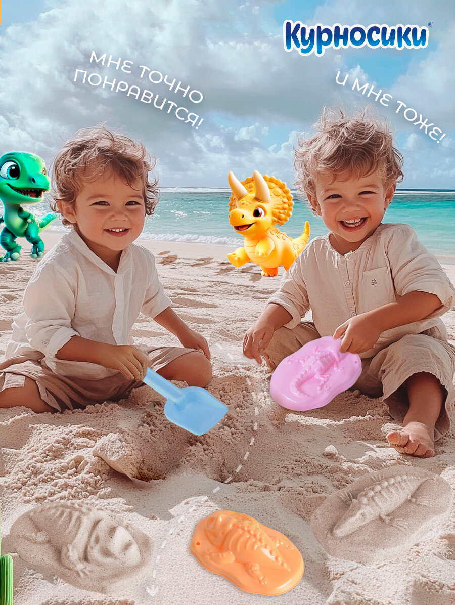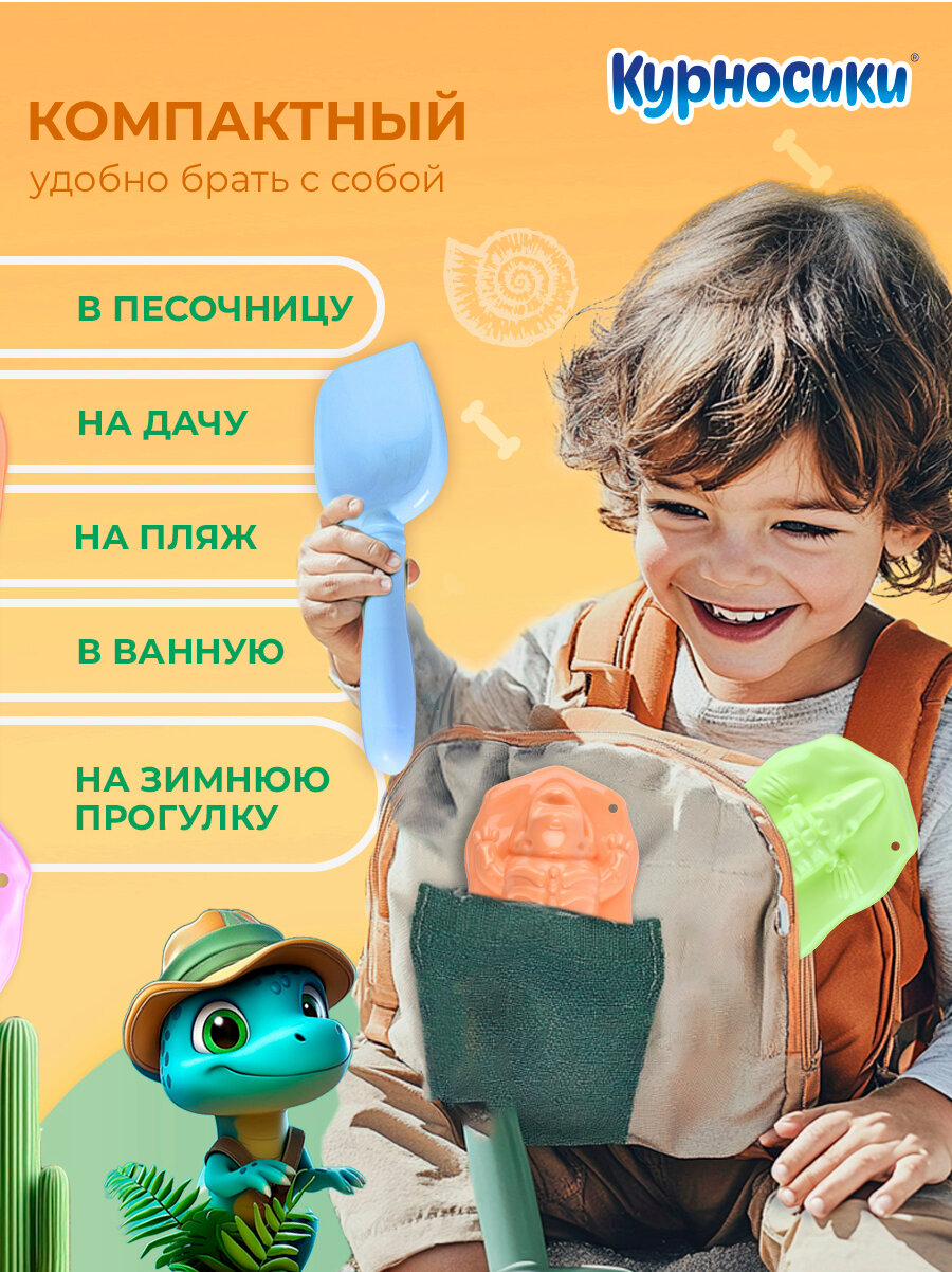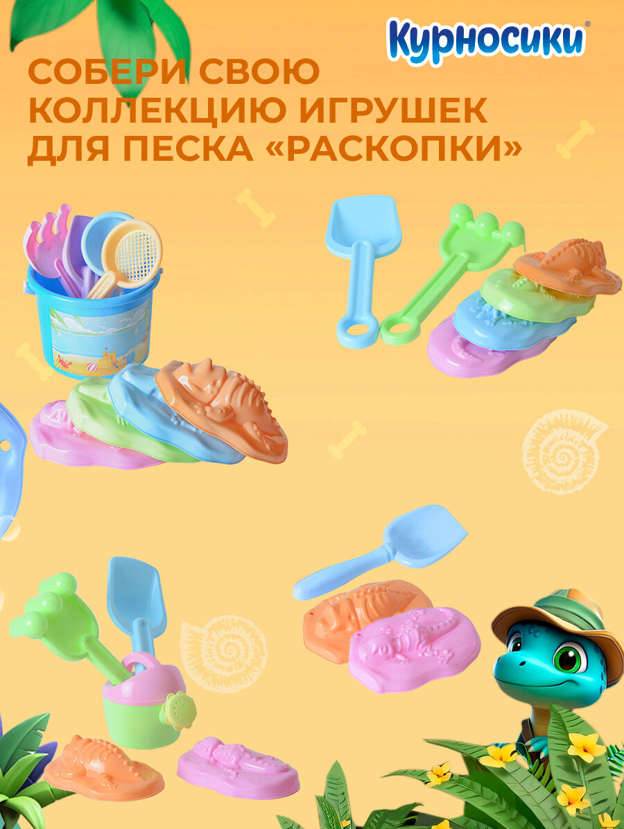 Детский игровой набор для песочницы Курносики "Раскопки" лопатка и формочка для песка 2 шт, голубой, с 3 лет интересное:
