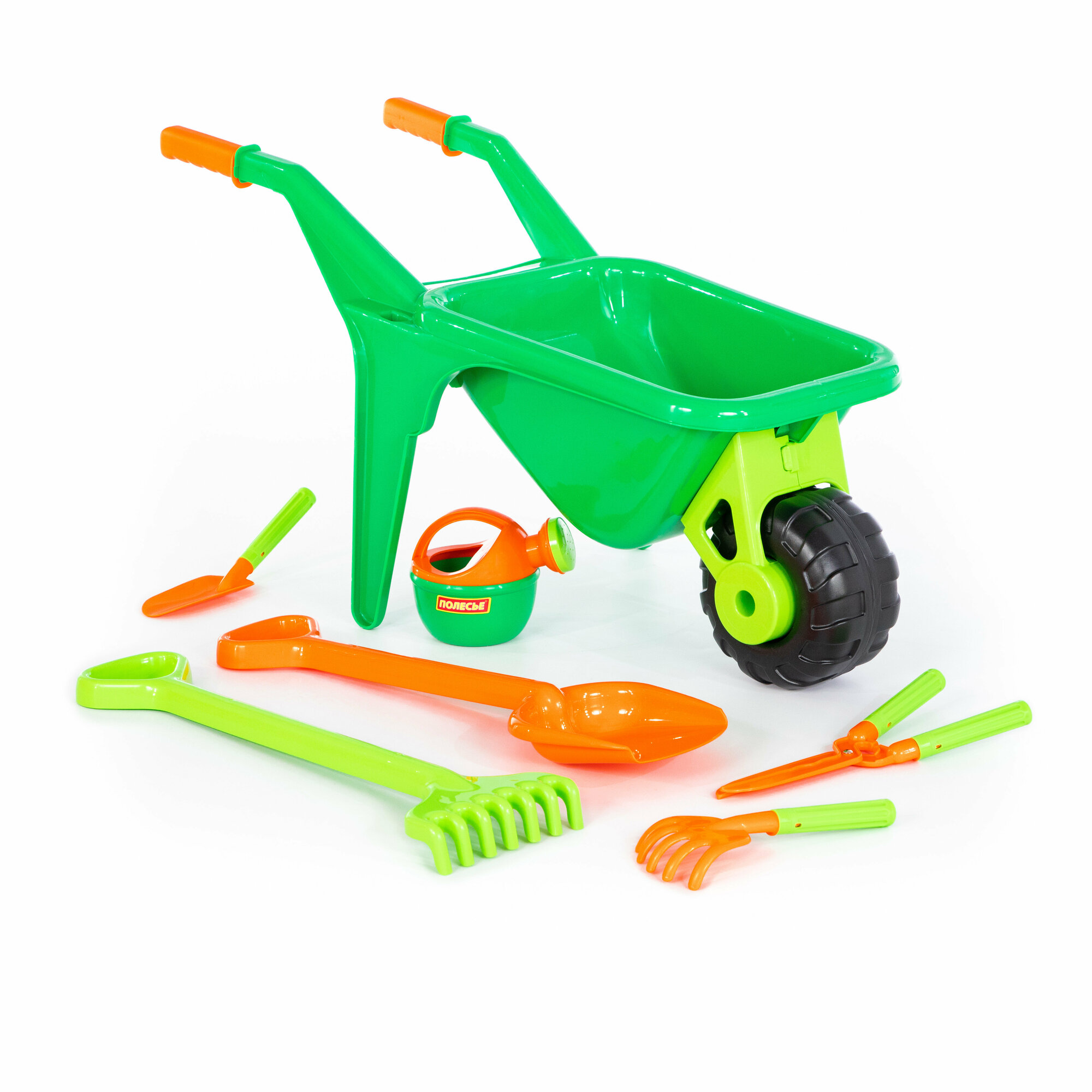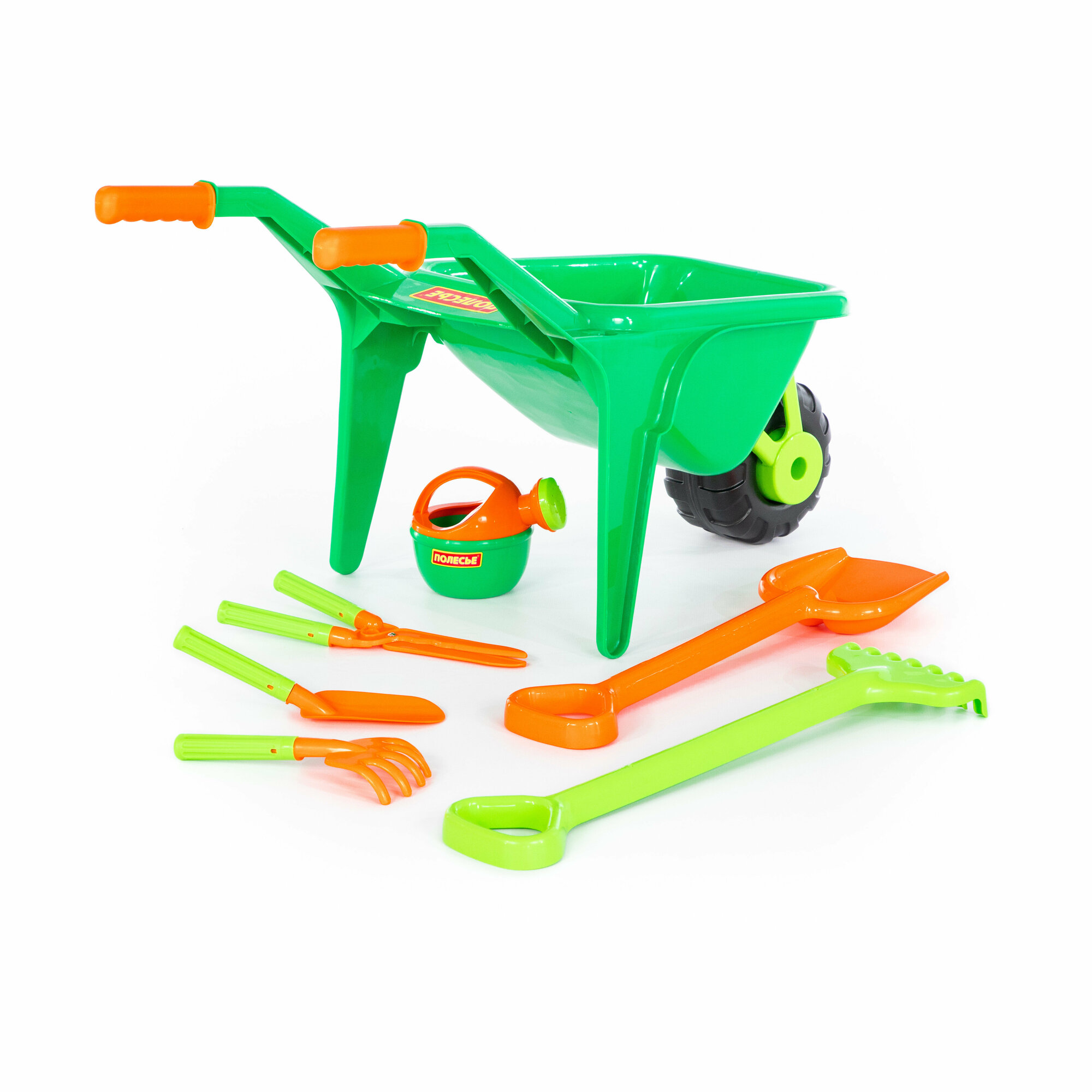 Набор Полесье №456, тачка Садовод №2+лопата большая+грабли большие+совок №29+грабельки №2 интересное: