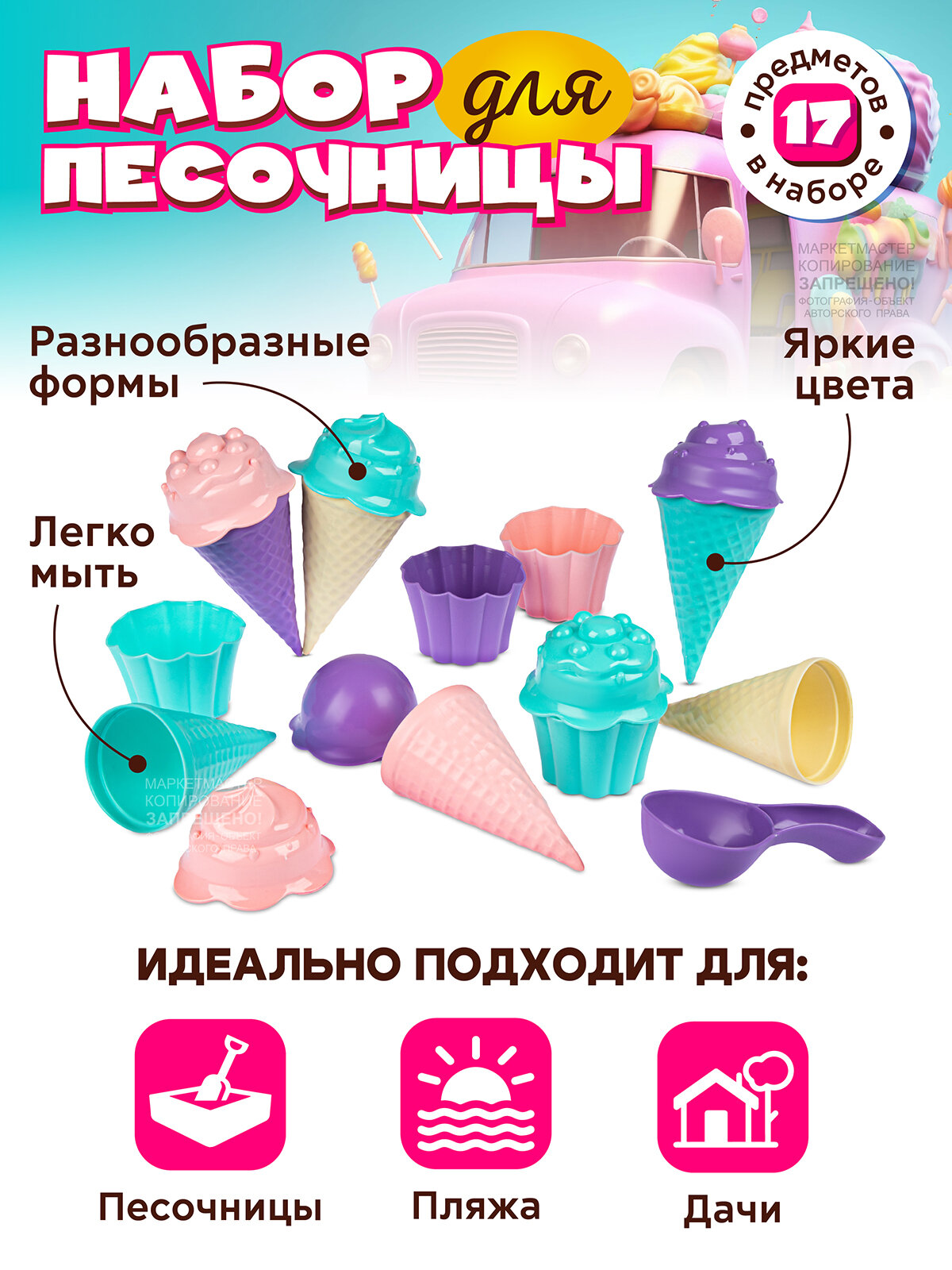 Купить Песочный набор Мороженое, набор кондитера, маффины, формочки, для игры в песочнице, JB5300644