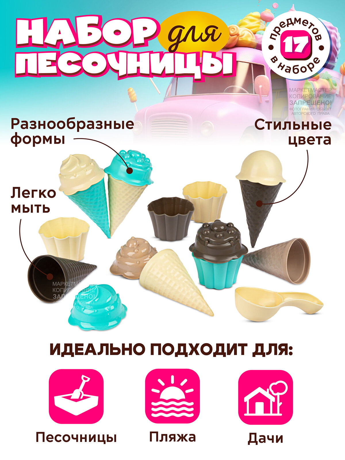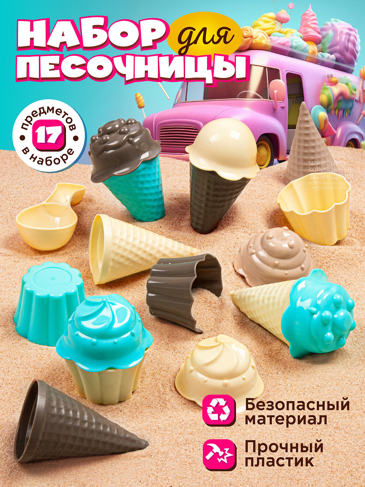 Купить Песочный набор Мороженое, набор кондитера, маффины, формочки, для игры в песочнице, JB5300646