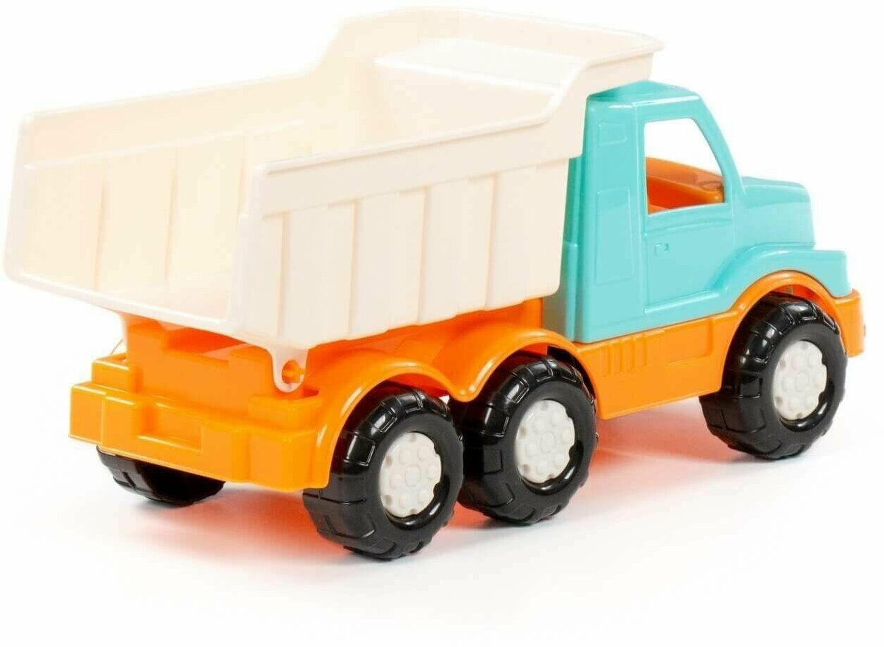 Купить Набор для песочницы: самосвал 26 см + 2 формочки машинки, совок / песочный набор Полесье для мальчика (бирюзовый)