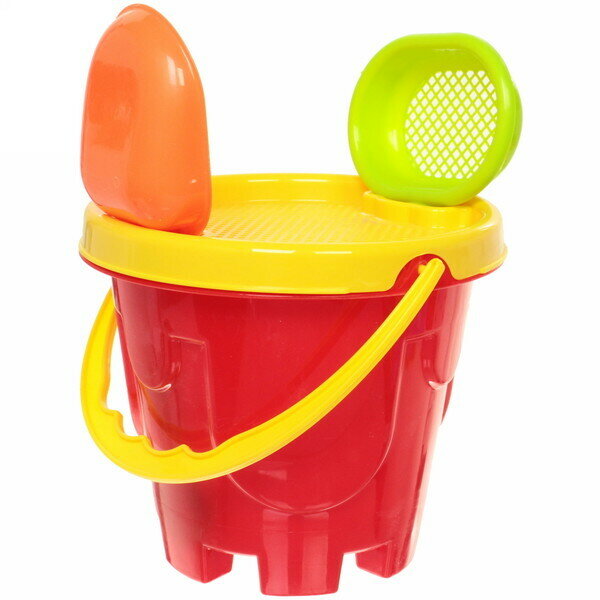 Песочный набор "Человечек", ведёрко с крышкой, лопатка, грабли, воронка, сито, формочки, JB5300904