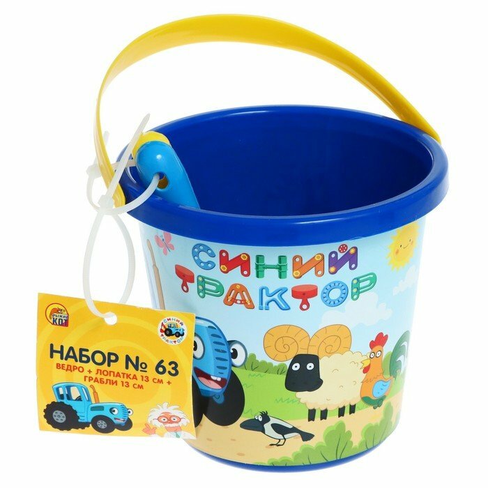 Купить Песочный Набор №63 Синий трактор (ведро №8 0,85л, лопатка 13см, грабли 13см, от 3 лет) И-3180, (Рыжий кот)