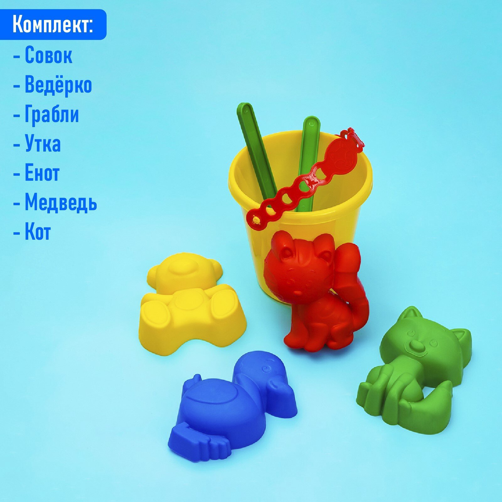 Купить Набор для песочницы, 4 формочки, грабли, лопатка, ведро, цвет МИКС, Соломон