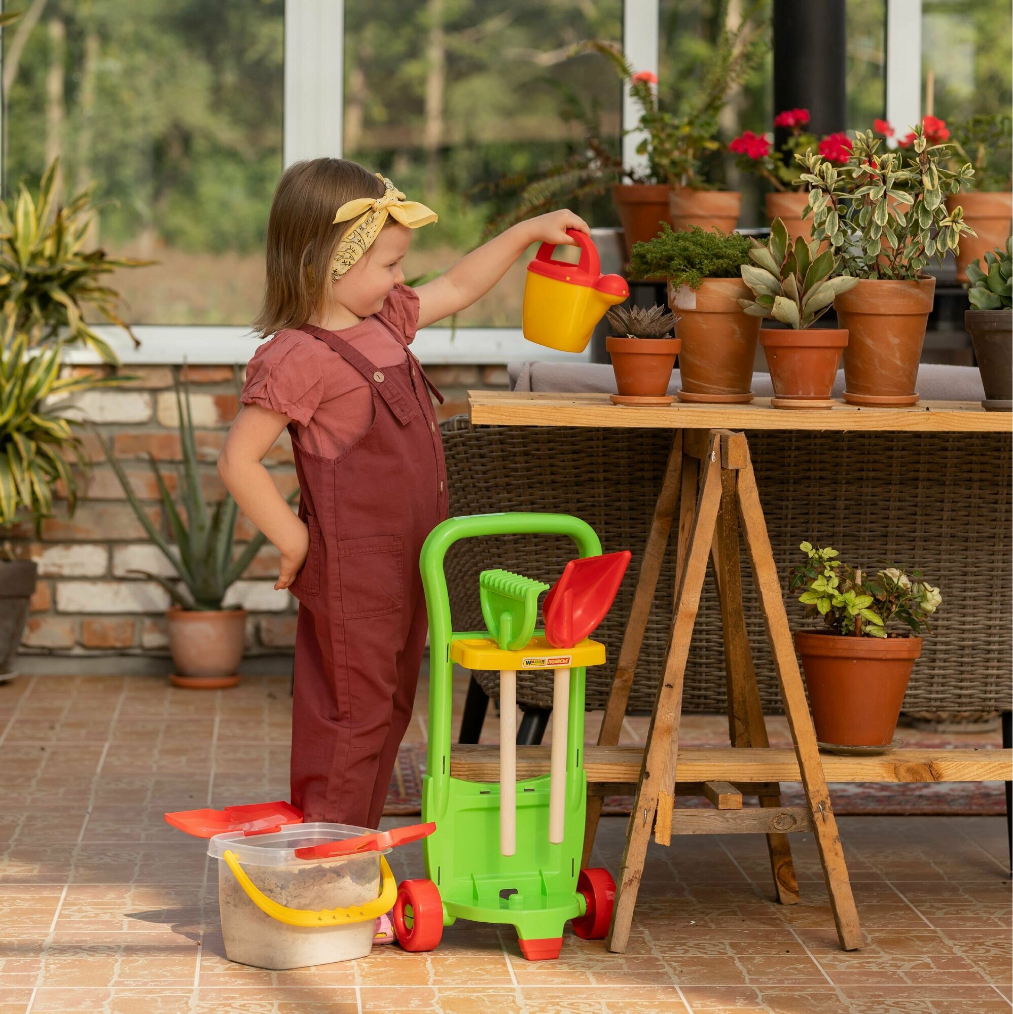 Садовый набор СтроМ "У959", полимер, с тележкой, 9 предметов