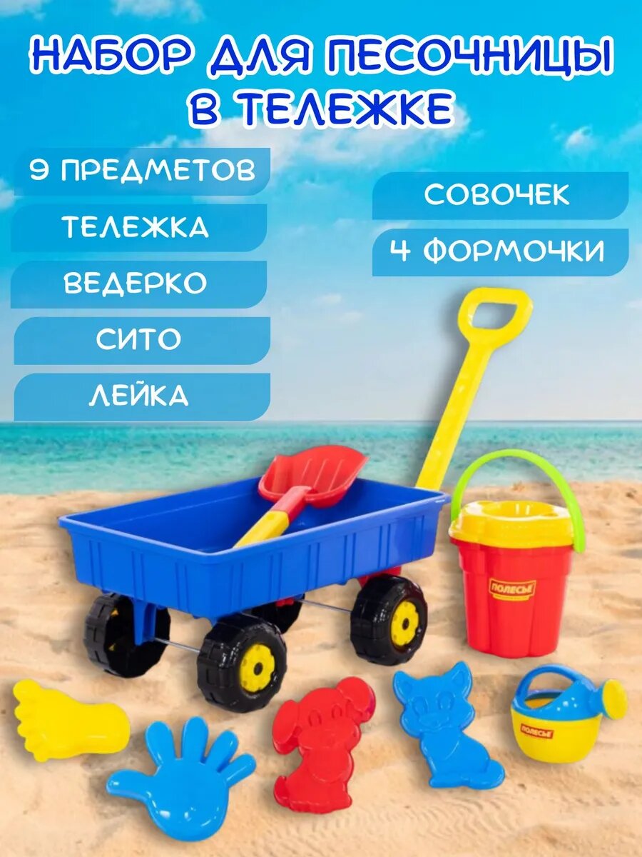 Набор для песочницы детский в тележке 9 предметов интересное:
