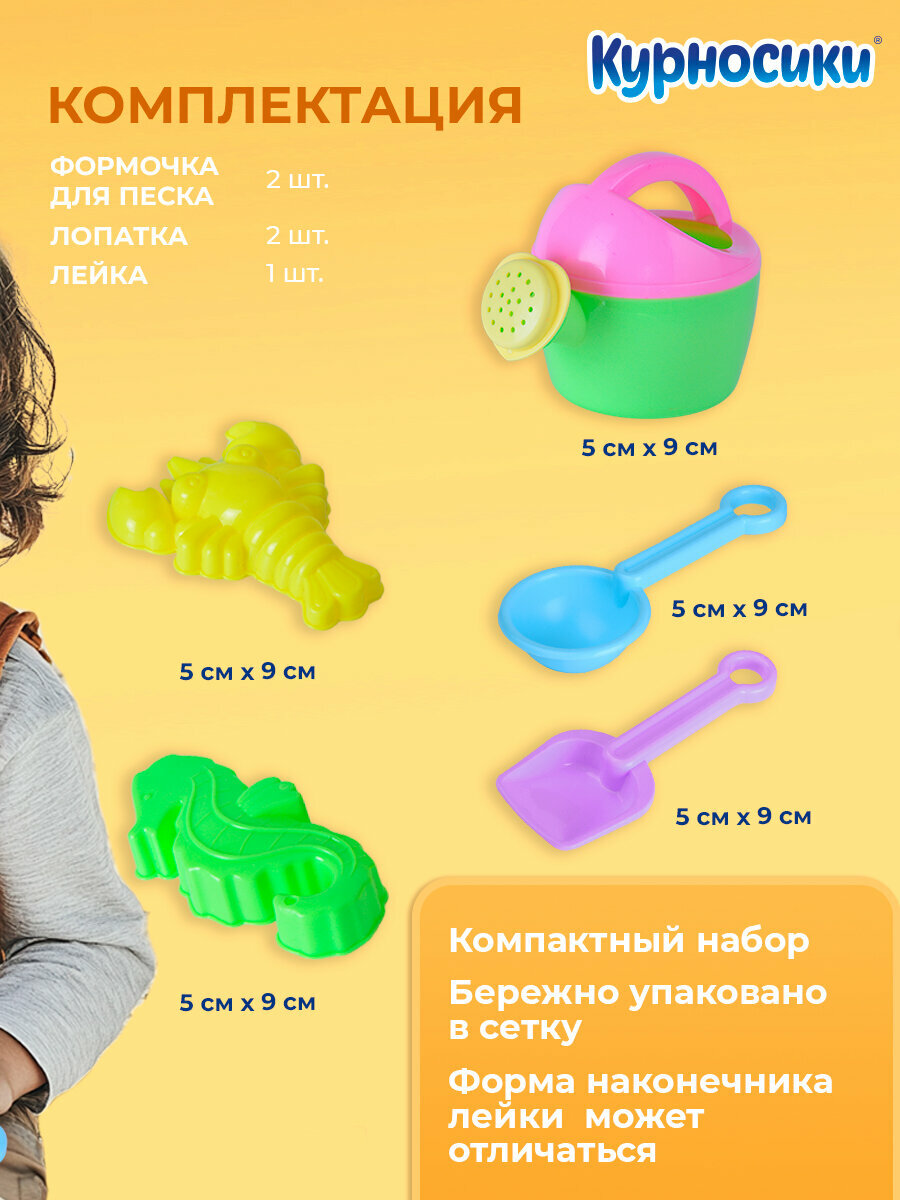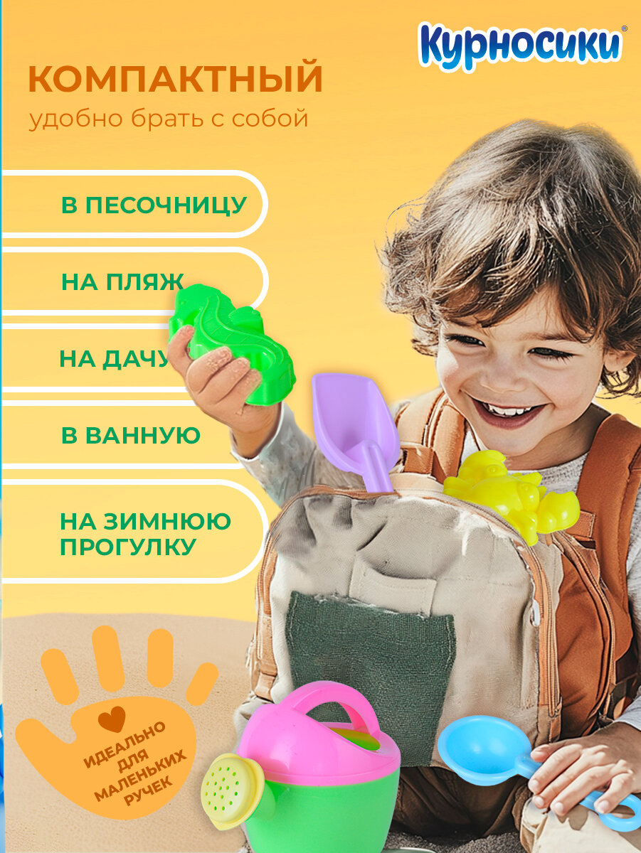 Детский игровой набор для песочницы Курносики "Садовый" лейка-сердце, лопатка 2 шт и формочка для песка 2 шт, с 3 лет интересное: