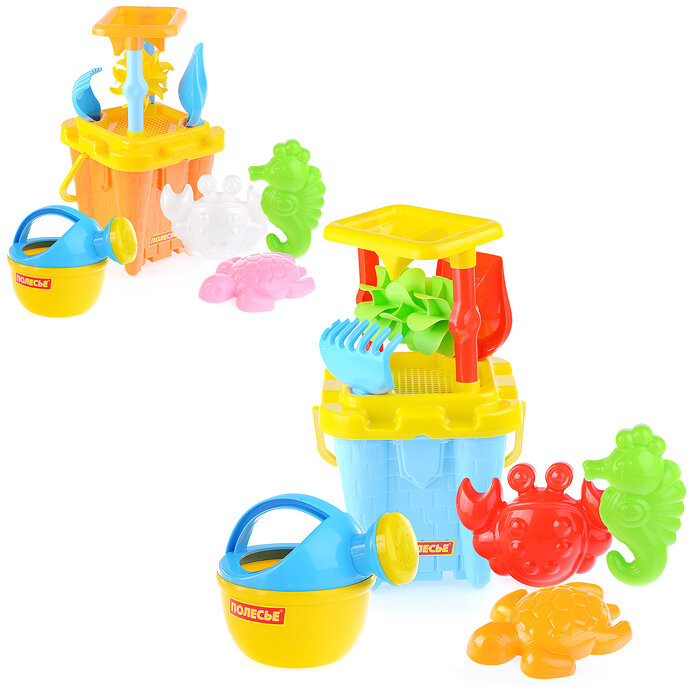 Купить Набор №557: песочная мельница №2 с основанием ситечко-крепость большое №2, ведро-замок большое №2, л